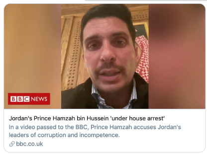 约旦亲王哈姆扎“被软禁在家”。BBC报道截图