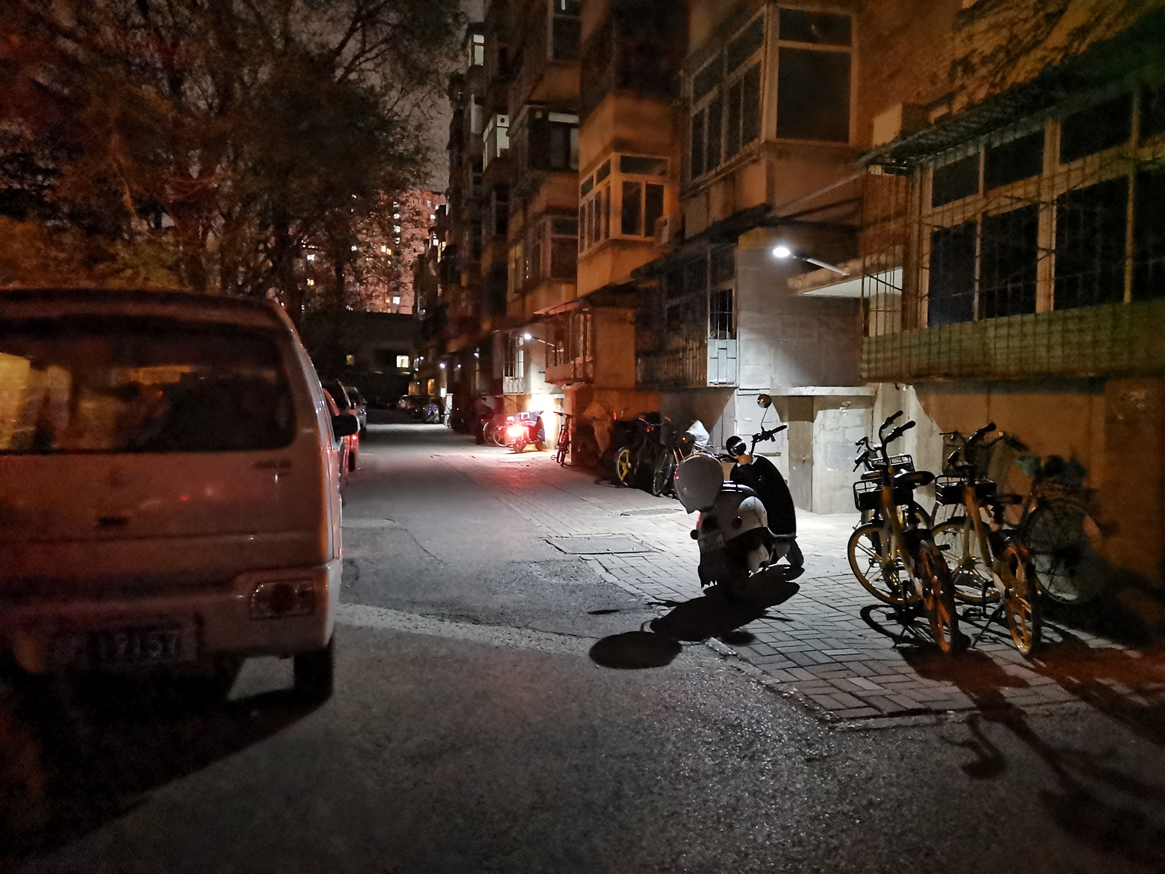 这得亲身体验:大晚上的工作人员拿着手电筒亲身当“灯柱”,体验社区小巷哪个位置安装路灯用处最大。