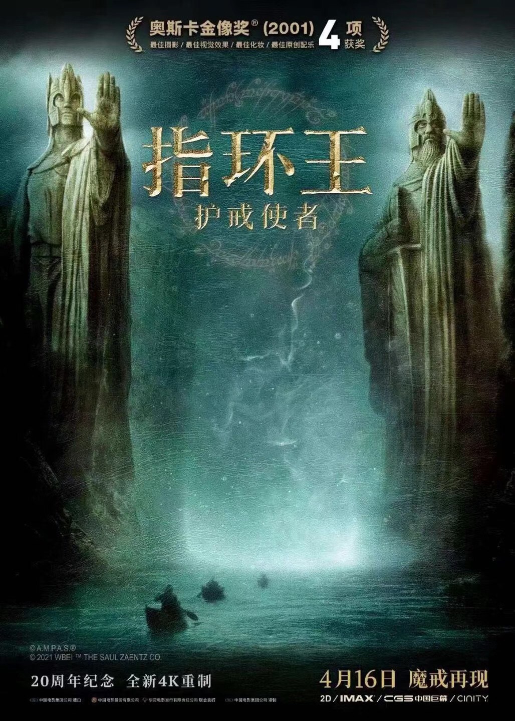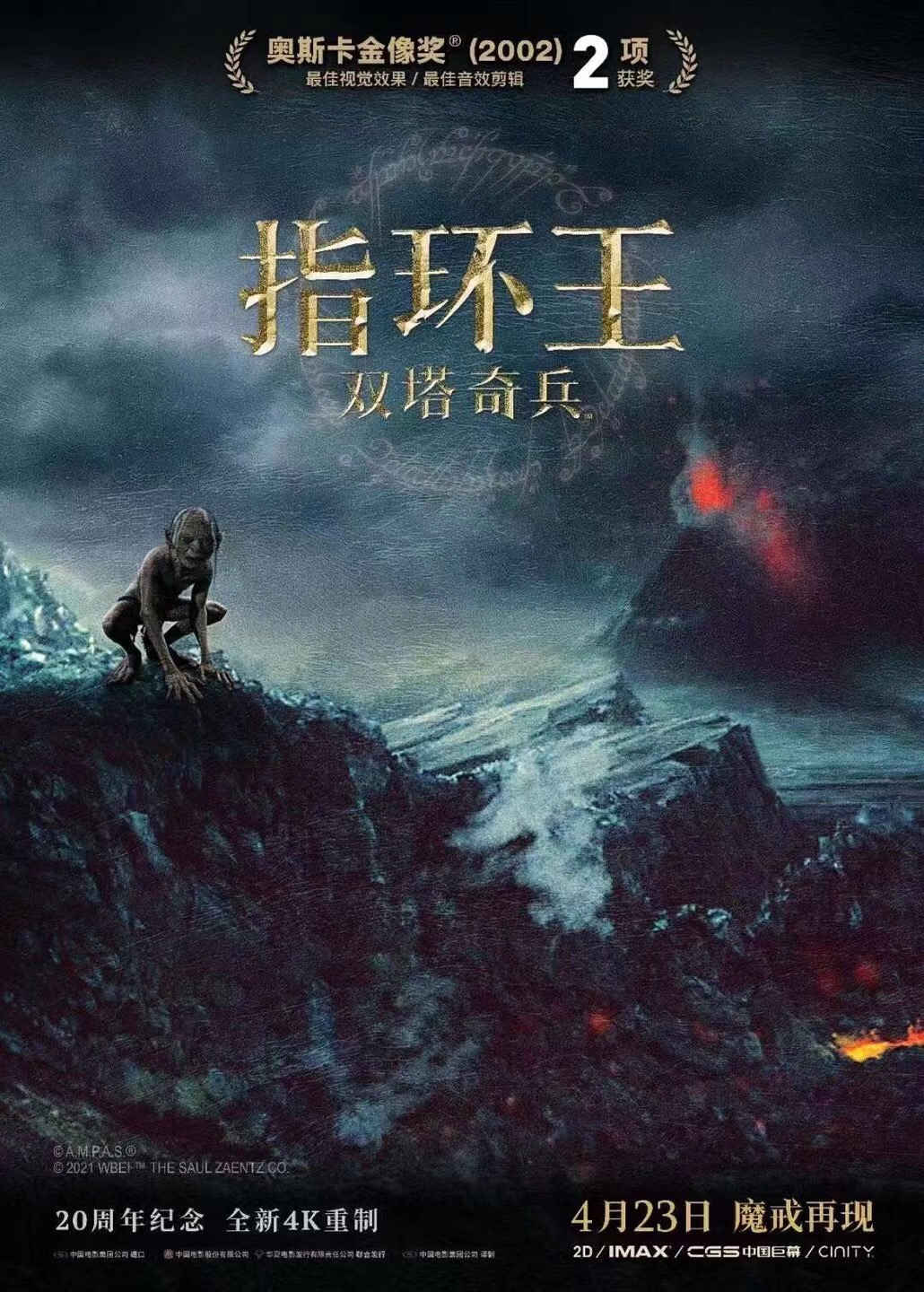 4月14日下午,《指环王》三部曲中的前两部——《指环王:护戒使者》和《指环王:双塔奇兵》在中国内地正式定档,将于4月16日、4月23日重映,与此同时,片方发布了定档海报。