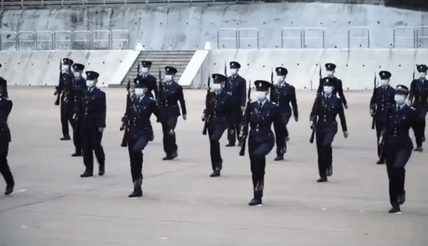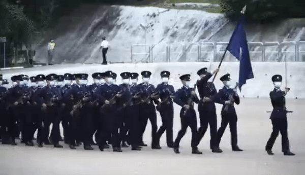 “适逢香港国安法实施后首个国家安全教育日,警队期望通过中式步操表演,加强市民的国家安全意识。”香港警察学院操练及枪械训练总督察卢宜颂说,这是警队成立177年来首次向公众表演中式步操。