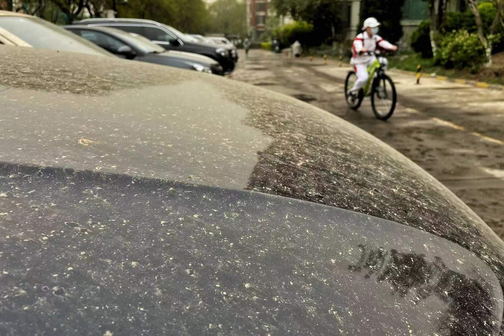 飞沙走石混杂着降雨,给室外的行人和车辆造成不小的麻烦,不少车辆变得“灰头土脸”。
