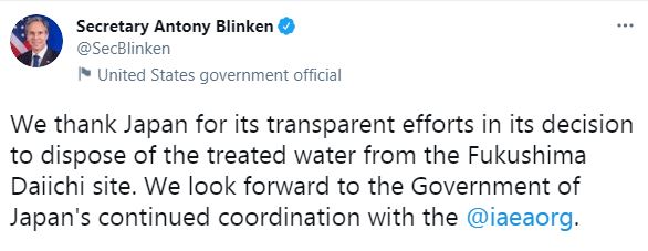 更令人惊诧的是,美国国务院竟然公开发表声明,称日本政府向海中排放核废水的做法“似乎符合全球公认的核安全标准”。美国务卿布林肯甚至在社交媒体发文“感谢”日方在此问题上所做出的“公开透明”的努力。
