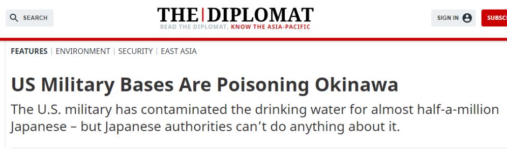 △《外交学者》:驻日美军正在毒害冲绳,污染了近50万日本人的饮用水。