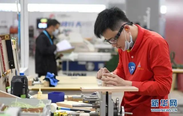 2020年12月10日,首届全国职业技能大赛在广州举行,选手在木工项目比赛中。(图源:新华网)