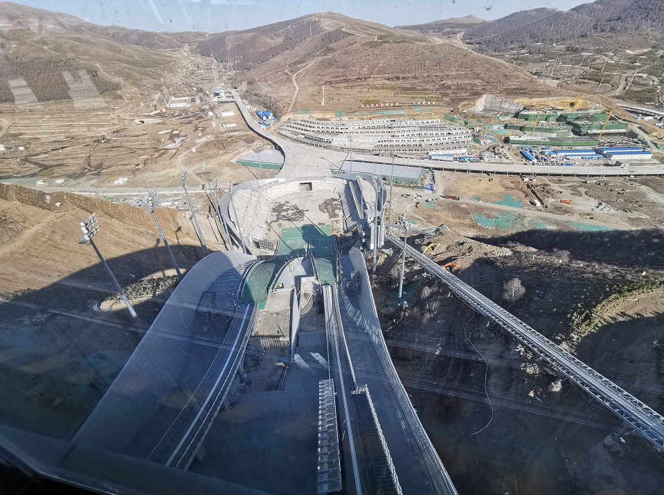 国家跳台滑雪中心是张家口赛区冬奥场馆建设工程量最大、技术难度最高的竞赛场馆,主体建筑设计灵感来自中国传统饰物“如意”,被形象的称为“雪如意”。国家跳台滑雪中心由顶峰俱乐部、出发区、滑道区、看台区组成,设置8个比赛项目,产生8枚金牌。