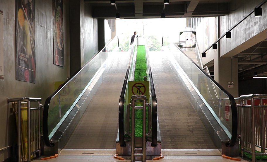 突然从电梯上滑落下来!