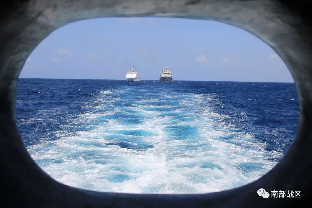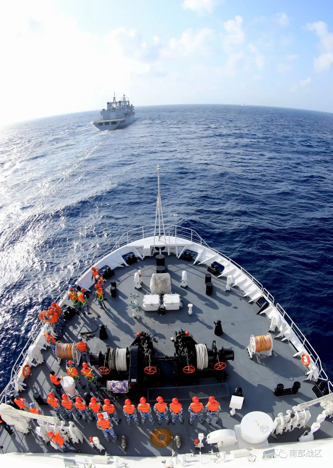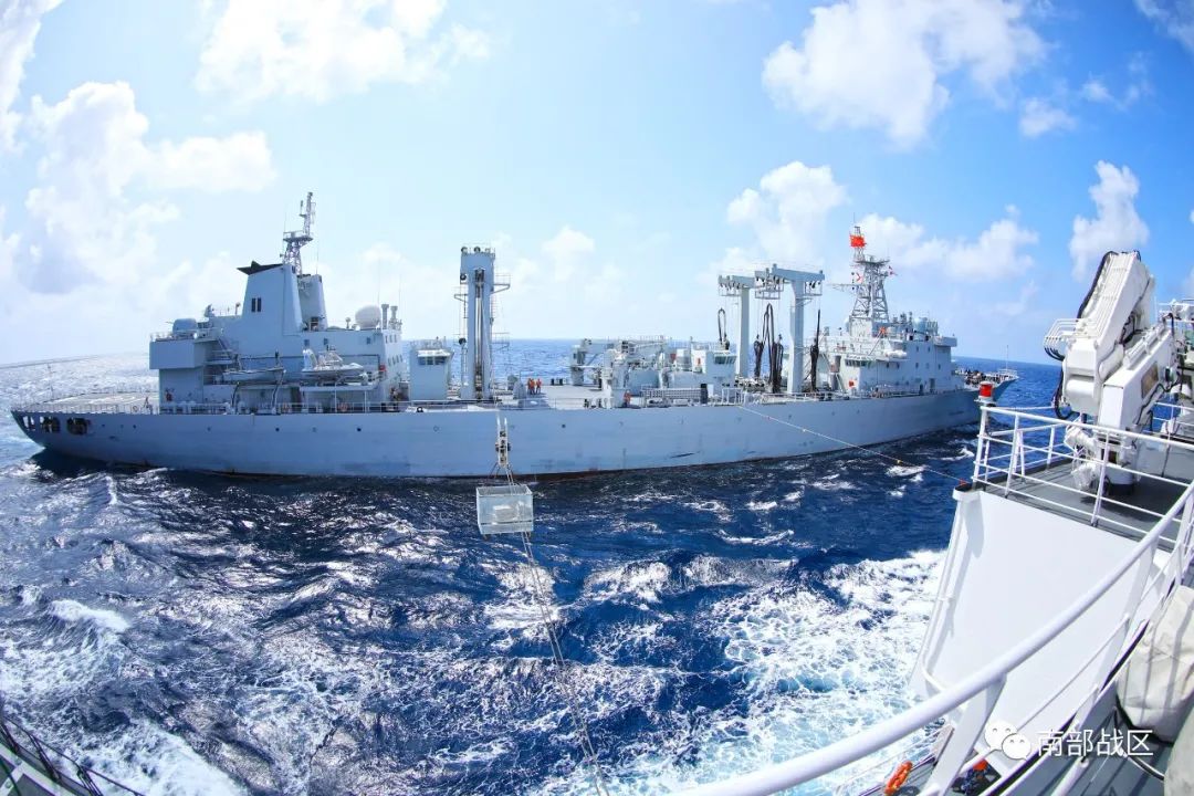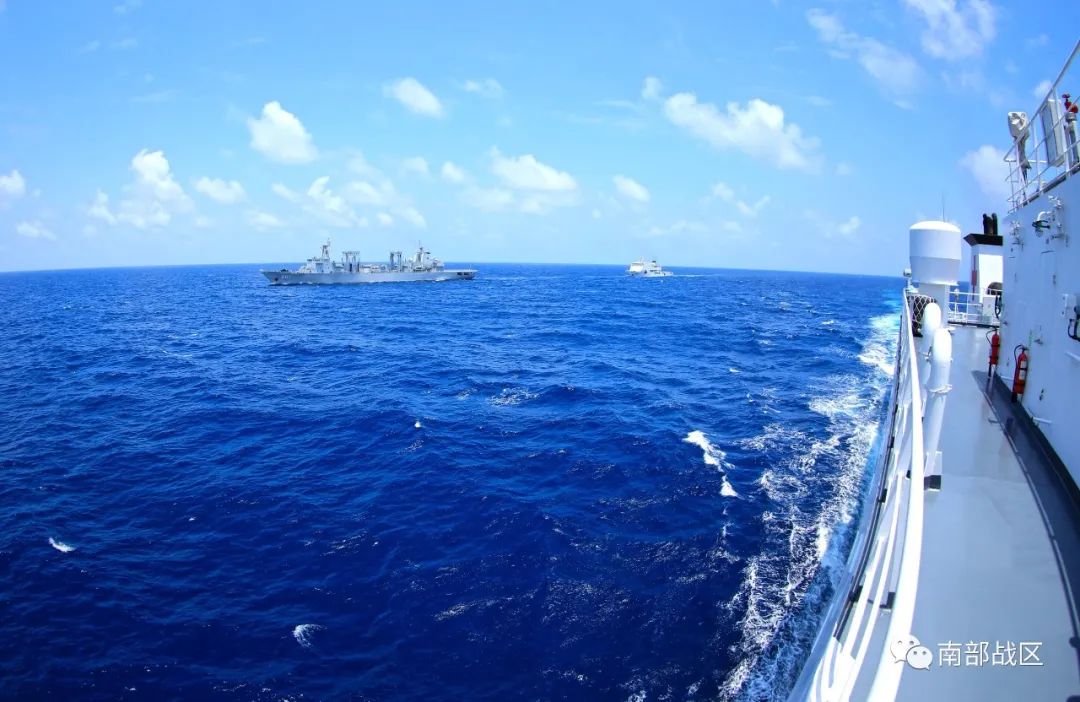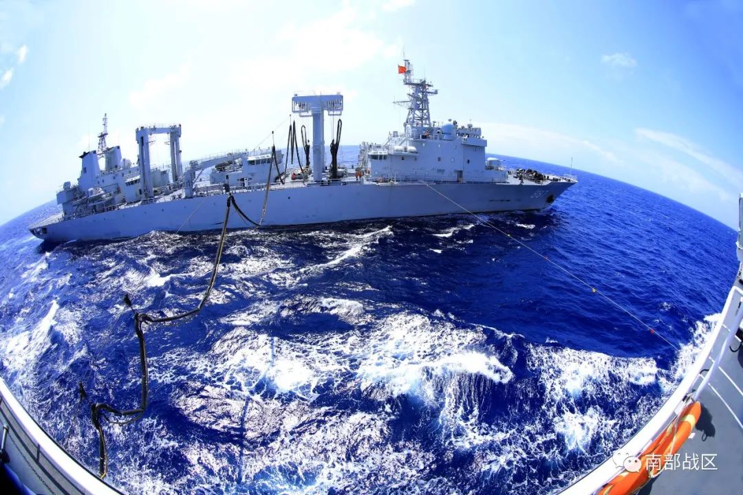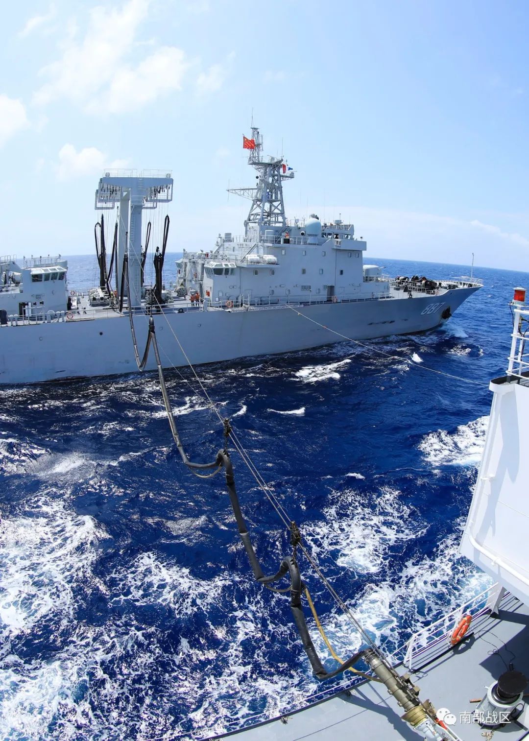 战舰驰骋,波飞浪卷。舰艇编队在相继完成航行纵向补给、横向干货和液货补给后,调转航向,向下一训练海域疾驰而去。碧海蓝天下,舰艇编队犁出一道道壮美的航迹。那奔腾的浪花,仿佛奏响一曲曲奋进的凯歌……