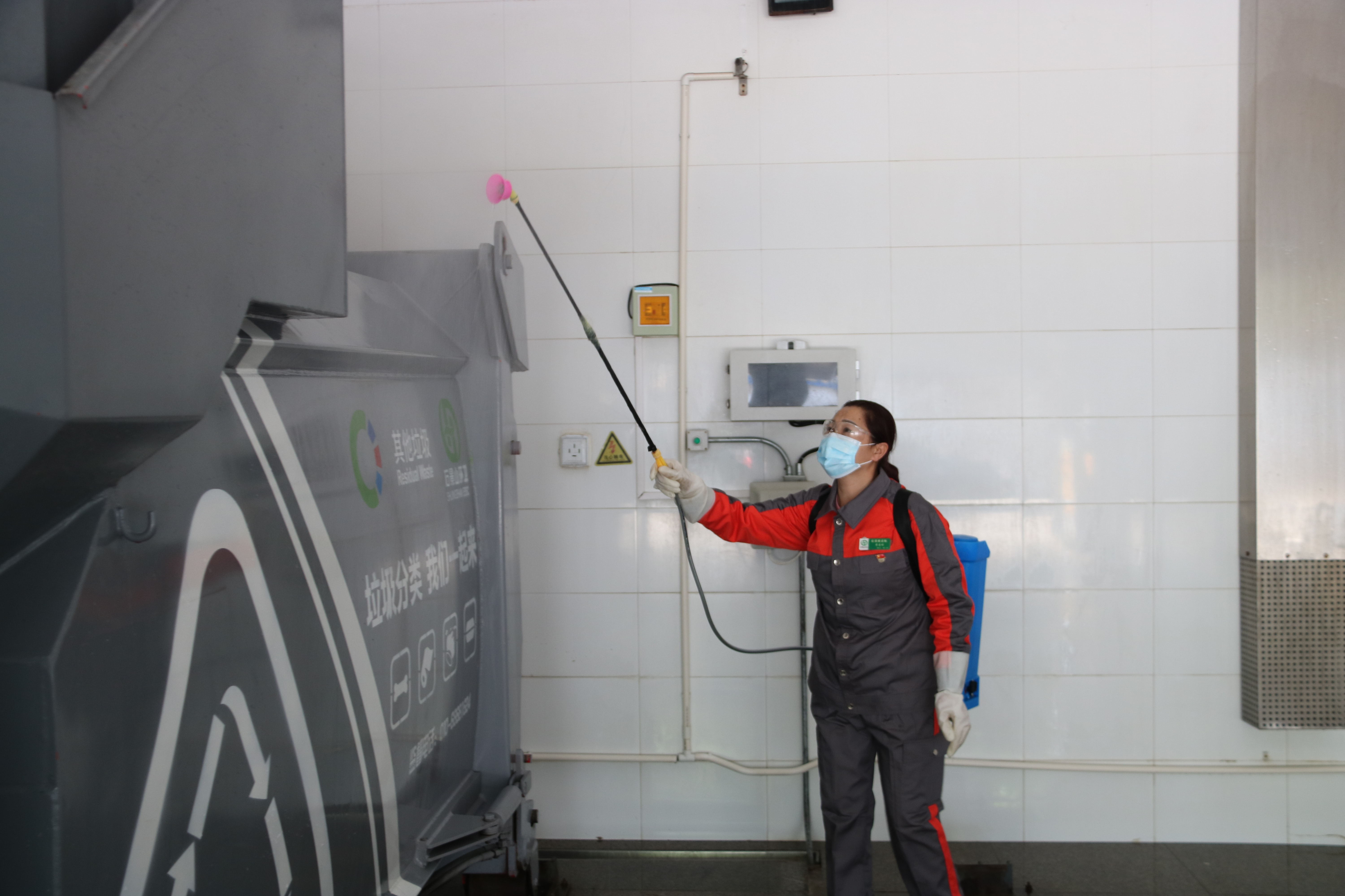 新冠肺炎疫情吃紧期间,收拾垃圾是最危险的工作之一。但刘明群主动请缨,坚守在疫情防控一线。每当有作业车进入垃圾楼,她就会开始“车随进随消毒、垃圾倒进随消毒、垃圾容器随换随消毒”的工作循环,次复一次、不嫌繁琐、不知疲倦。不管工作怎么危险、繁重,她都是微笑面对,隔着护目镜、大口罩,你也能从她的眼睛里看到乐观的笑意。