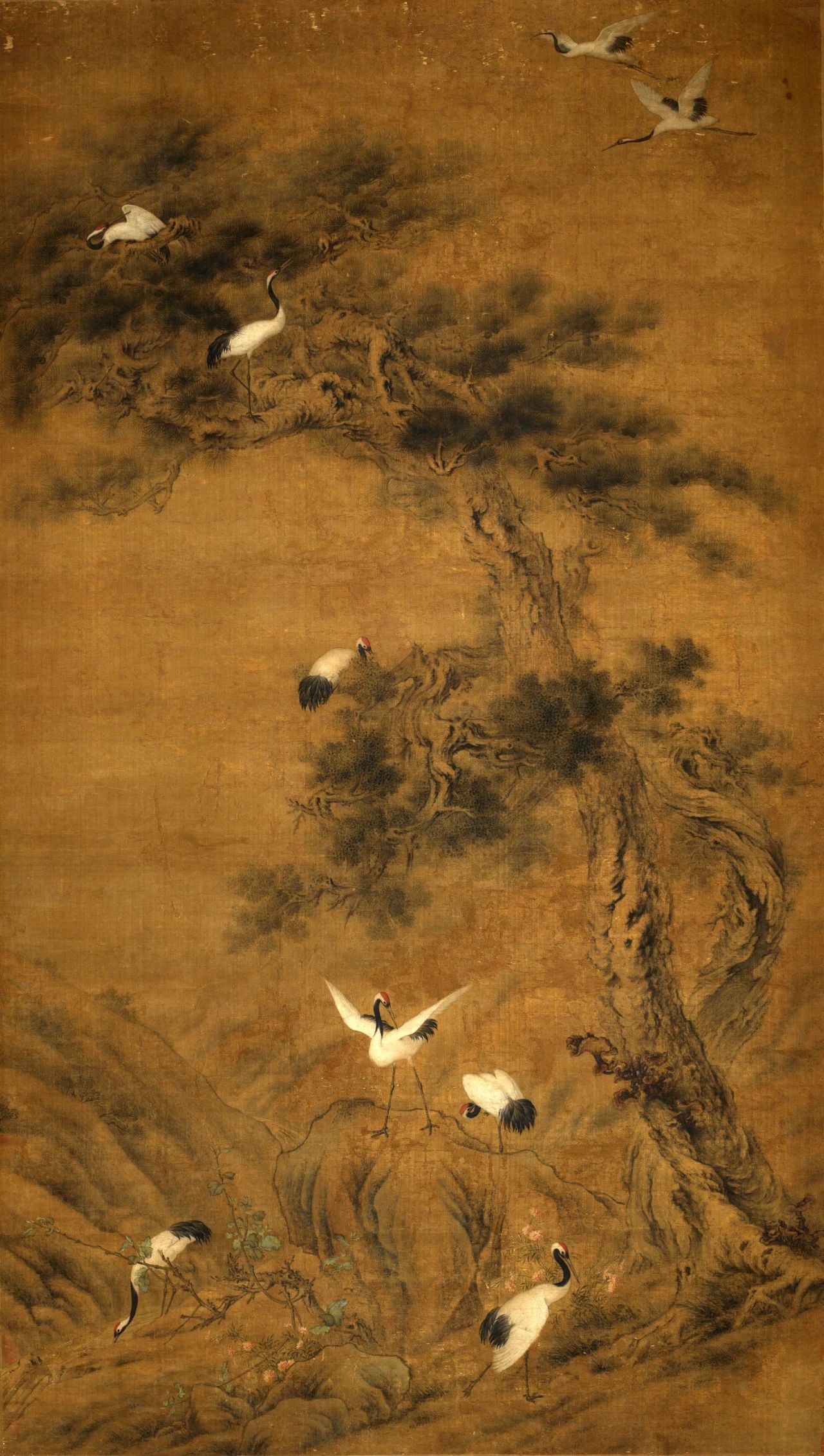 九鹤图 郎世宁 中国画 清代