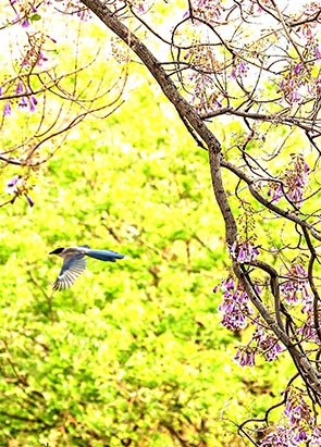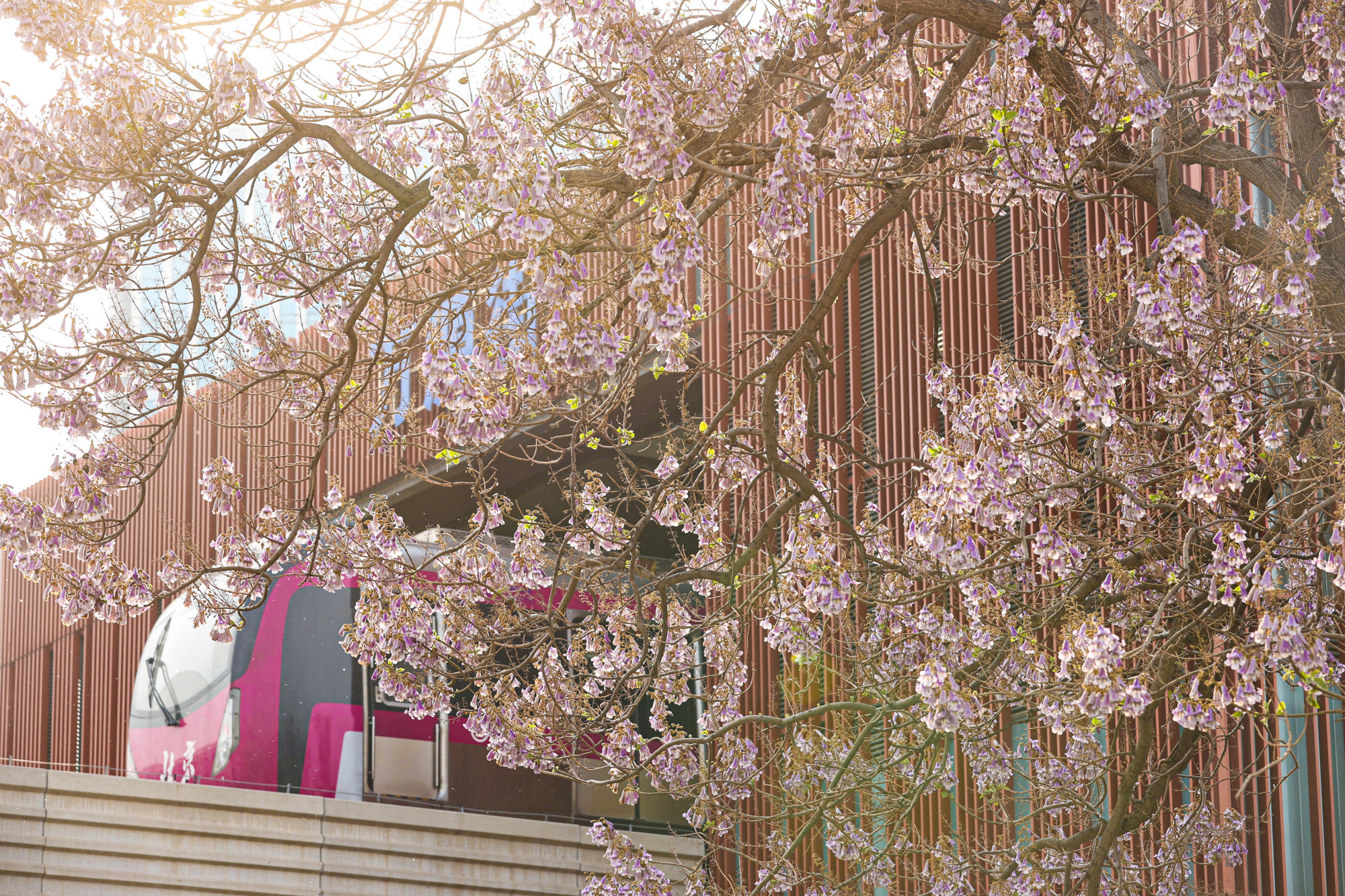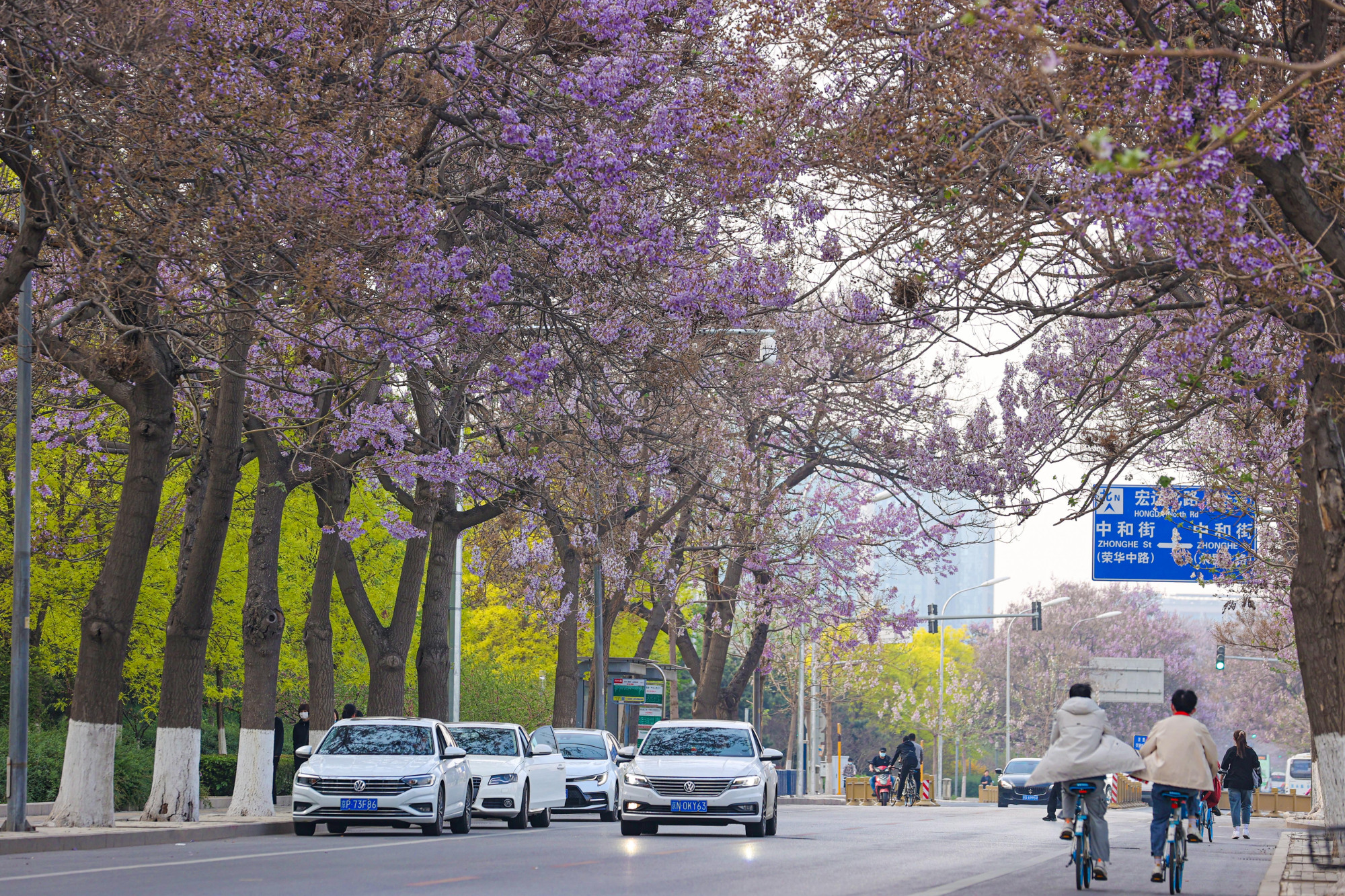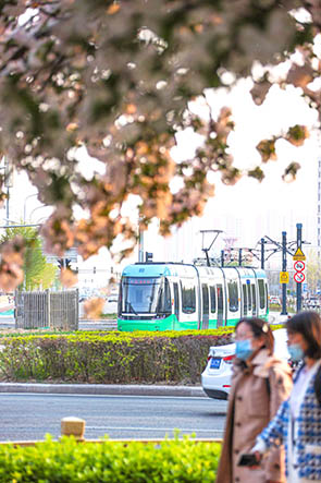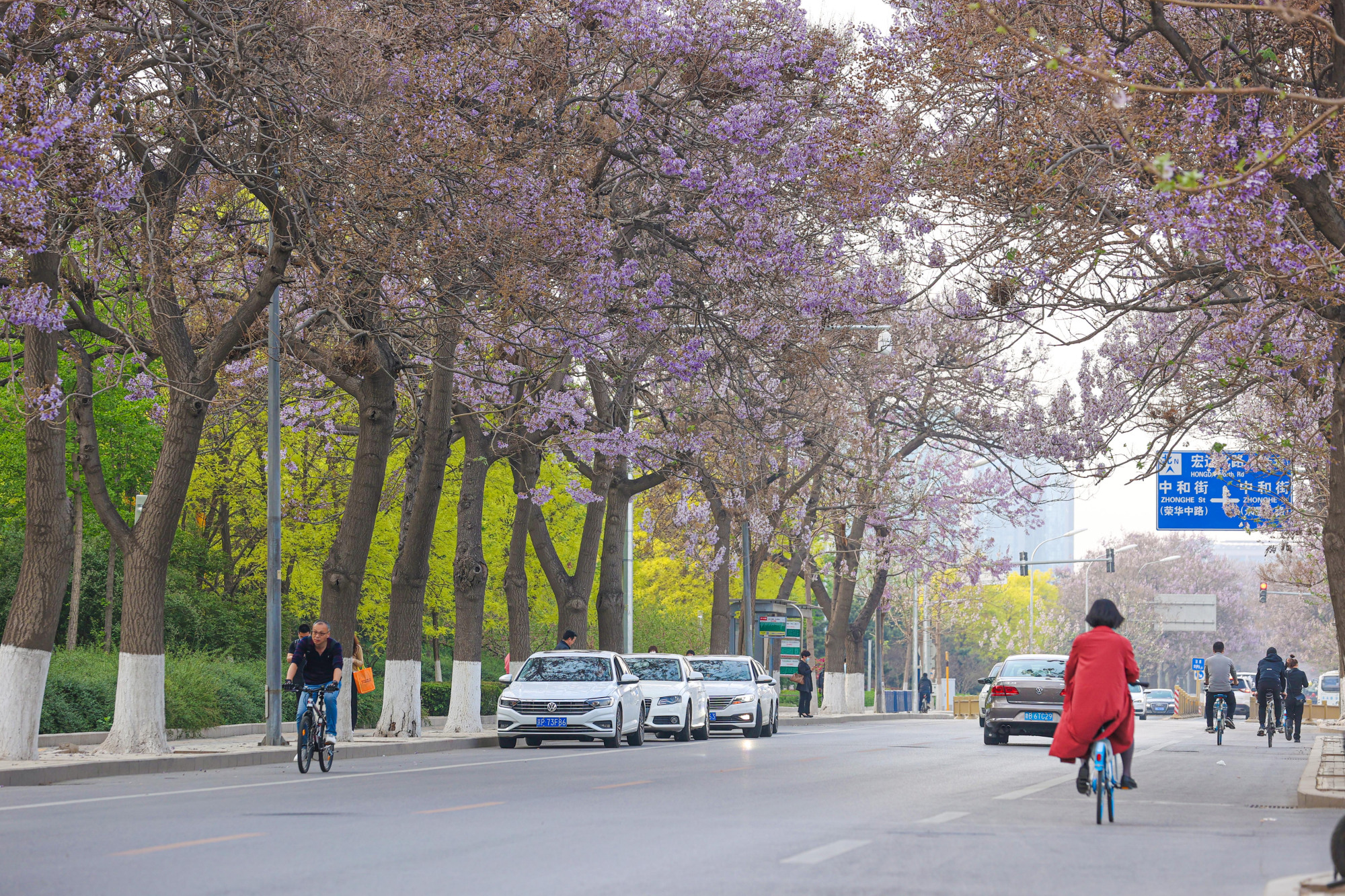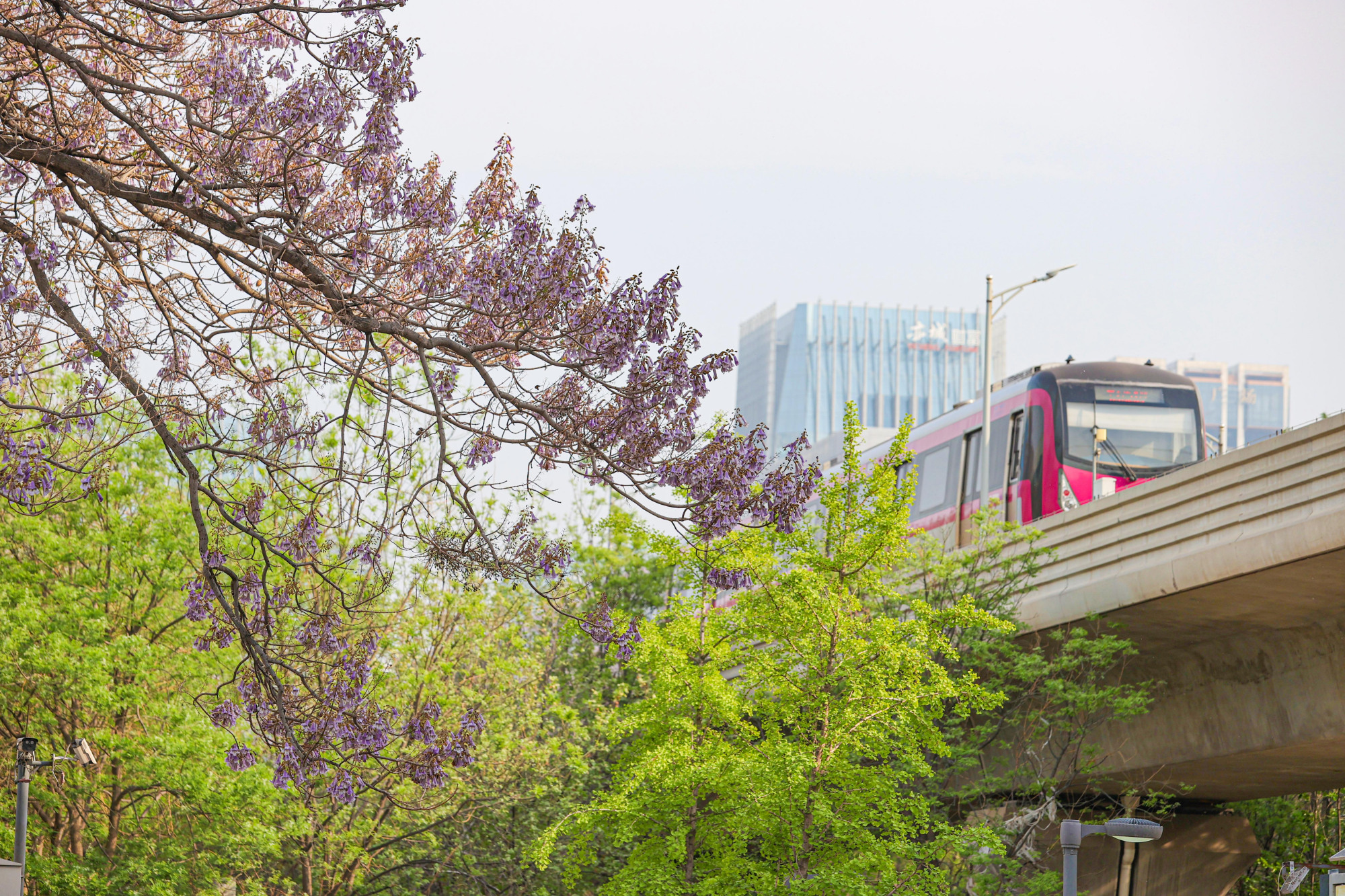 又是一年泡桐花开。20多年前,北京经开区初创者在宏达路栽下一片泡桐树,寄托引凤的美好期待。每年4月,泡桐花都会如期而开,为亦城的春天添上一抹淡彩。与此同时,随着地铁亦庄线缓缓驶过,“人在车中,车在景中”,车上的人在看车外的风景,而车外的人在看穿梭于花海中的春日列车。不仅仅是泡桐,在经开区处处可见桃花、海棠、牡丹竞相开放,仿佛打翻了调色盘。随着“城市色彩”建设工作的推进,经开区不断更新、优化彩色化树种,打造“增彩延绿、增花添彩”示范基地,形成“出门见绿、500米见园、1公里见水”的田园城市风貌。
