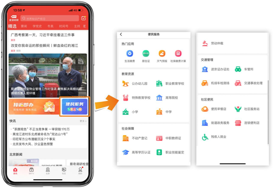 改版后的“北京时间”充分利用新技术和大数据的应用,接入政务、公共、生活等高频刚需服务,实现“北京时间”客户端功能服务性的重点突破,推出与百姓生活密切相关的系列服务,涉及到生活缴费、天气预报、社会保障、交通管理、教育资源查询、社区便民措施等,随着改版后技术不断迭代升级,北京时间还将纳入更多的服务类型,力求覆盖市民的基本生活保障,做到“一端在手,通达北京”。