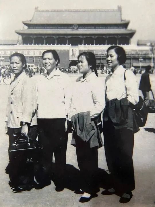 图为曾任外沙妇女号船长的周廷珍(左一)在1978年参加第四次全国妇女代表大会时在天安门前的合影(资料图翻拍)。新华每日电讯记者胡佳丽摄