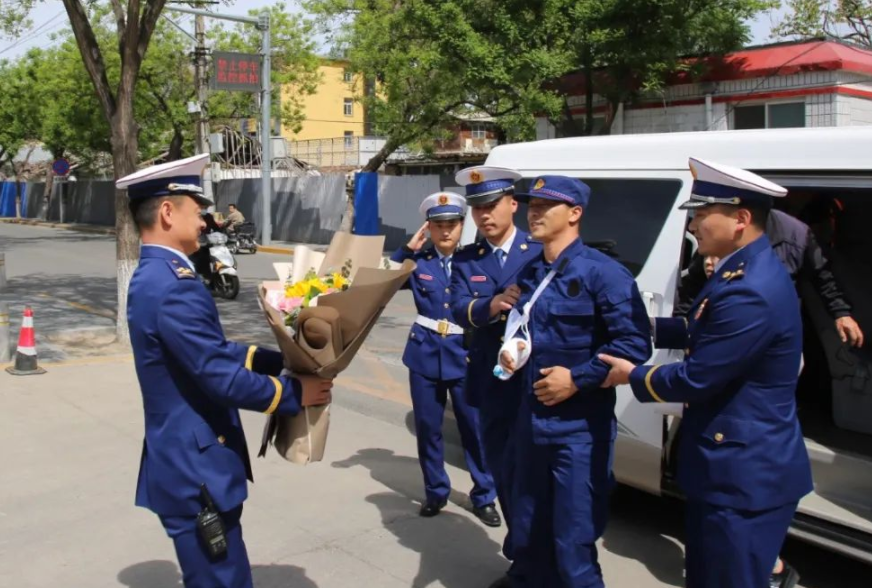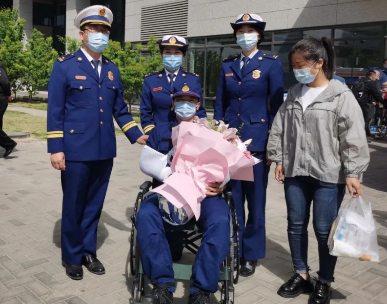 据北京市丰台区消防救援支队通报,4月28日上午,丰台支队隆重举行“4·16”火灾扑救中受伤的程少鹏同志出院归队仪式。