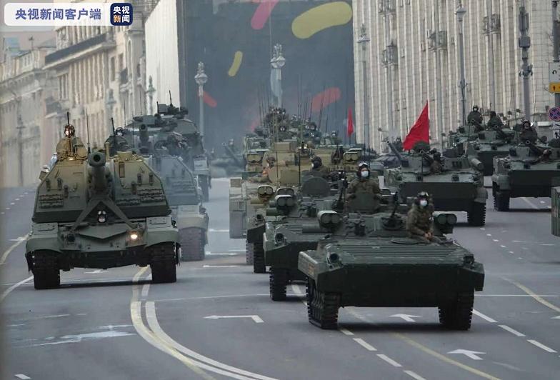 俄军受阅部队的轮式、履带式和防空系统装备悉数登场,其中既包括卫国战争时期立下赫赫战功的T-34坦克,也有俄军现役的“伊斯坎德尔-M”战术弹道导弹系统、“龙卷风-S”火箭炮、“台风”装甲车和“联盟-SV”自行榴弹炮等装备。