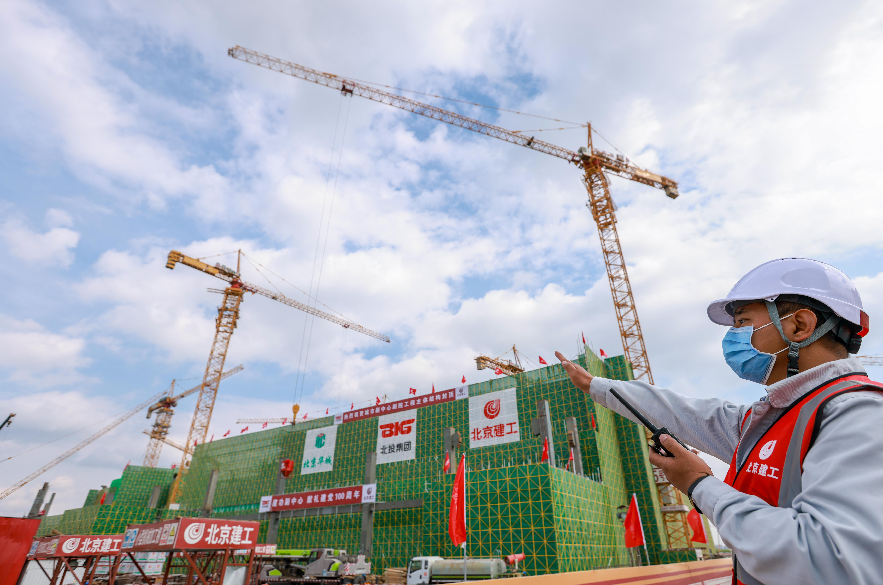 北投集团负责人介绍,城市副中心三大建筑均位于北京城市绿心森林公园内,包括博物馆、图书馆和剧院,其中总建筑面积12.5万平方米的剧院工程,是三大建筑中规模最大、技术难度最高的。