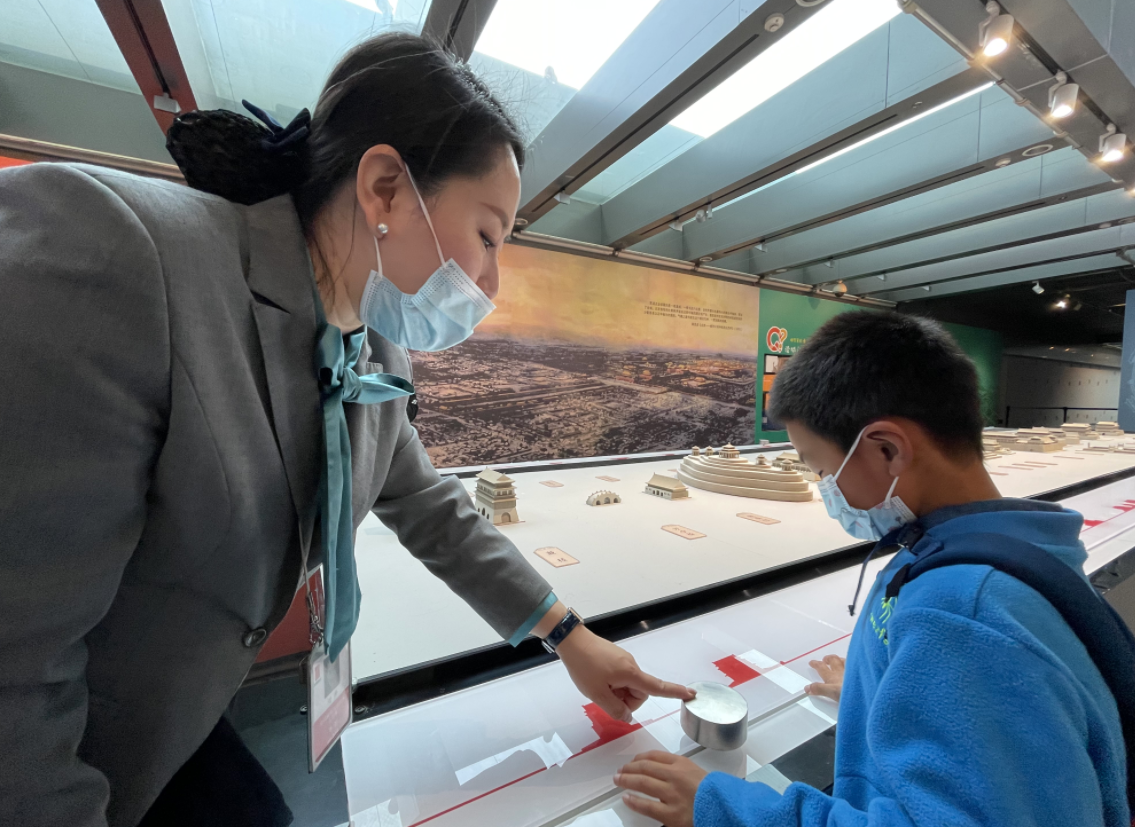 除了馆内的常设展,作为首博的“通讲”讲解员,各种临时展也是刘萍的主场。在刚刚升级重开的“读城——探秘北京中轴线”展览中,一件中轴线立体模型沙盘会“唱歌”——观众顺着“中轴线”滑动手柄,随着建筑屋顶的高低不断变换,会发出悦耳声响。“每一座建筑的背后,都有一段故事。”为此,刘萍在几万字的讲解词中又加入很多自己查阅的拓展知识,每当观众将手柄放在不同建筑的位置,她就会带出相关的拓展内容,与观众探讨。