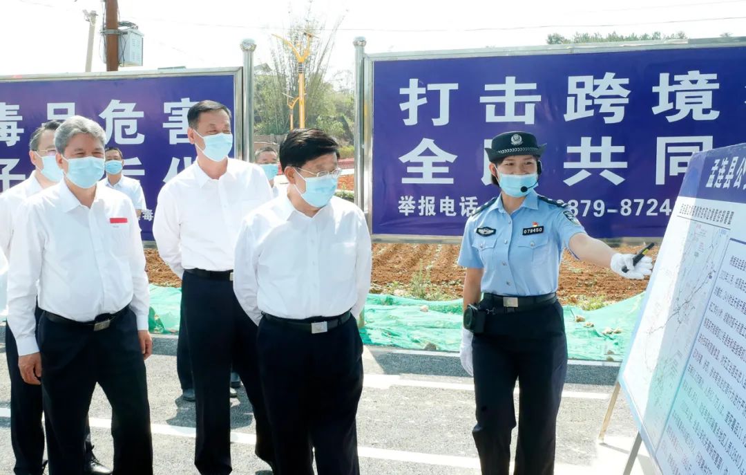 五月的云岭大地,满目苍翠,生机盎然。赵克志率调研组一行先后来到昆明、普洱、德宏、保山和孟连等地,深入出入境边防检查站、基层派出所、公安分局和边境口岸,就推进第一批公安队伍教育整顿、加强边境地区安全管理工作进行调研,并看望慰问战斗在维护安全稳定第一线的广大公安民警辅警。