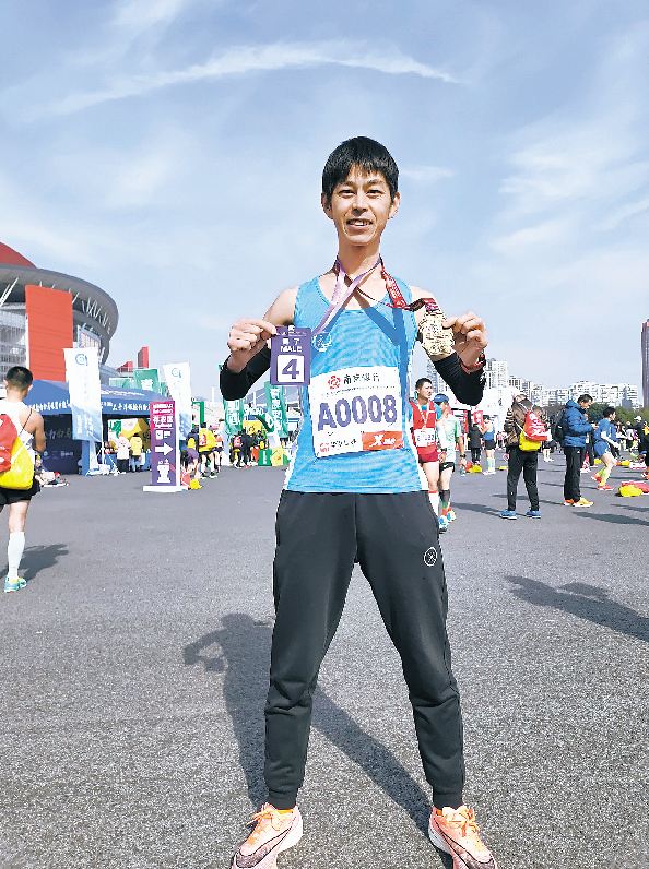 去年南京马拉松锦标赛上栾玉帅获得业余组第四名。(栾玉帅提供)