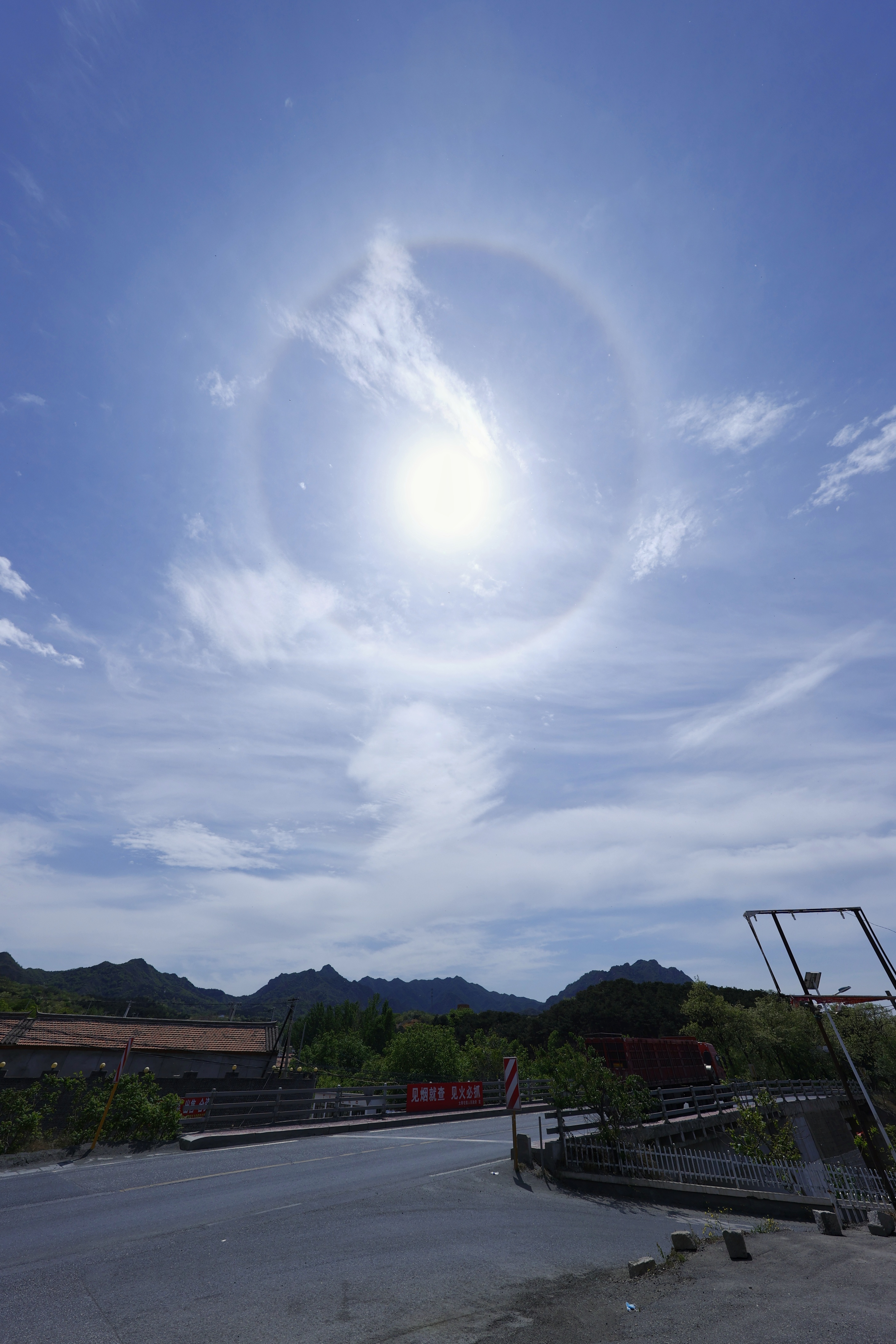 刚刚,北京密云区密云水库边G101国道上,拍到美丽的日晕奇观。