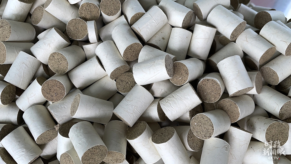 △艾绒加工成艾条(总台央视记者王鹏飞拍摄)