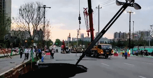 塌陷发生在快车道,深度约5米,塌陷面积约60平方米。据现场目击者介绍,一女子骑电动车不慎掉入,随即被土方掩埋。4名消防指战员冒险进入坑内,利用铁锨,徒手刨,破拆工具组等措施,将掩埋在女子上方的土方和大石块清除,女子被救出后,已送往医院急救。事故原因正在调查当中。