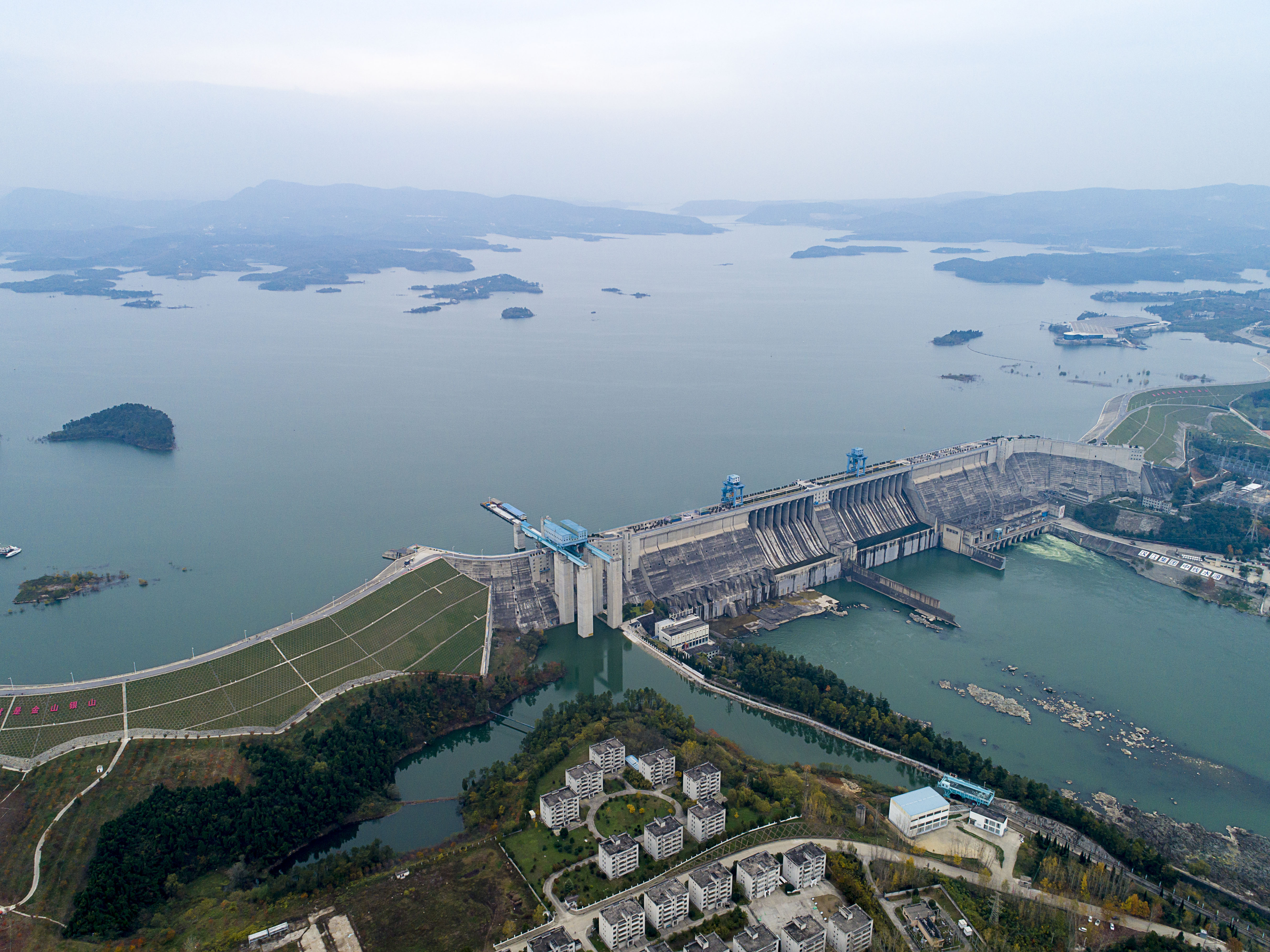 ↑位于河南南阳淅川县的南水北调中线工程渠首(2019年12月9日摄,无人机照片)。