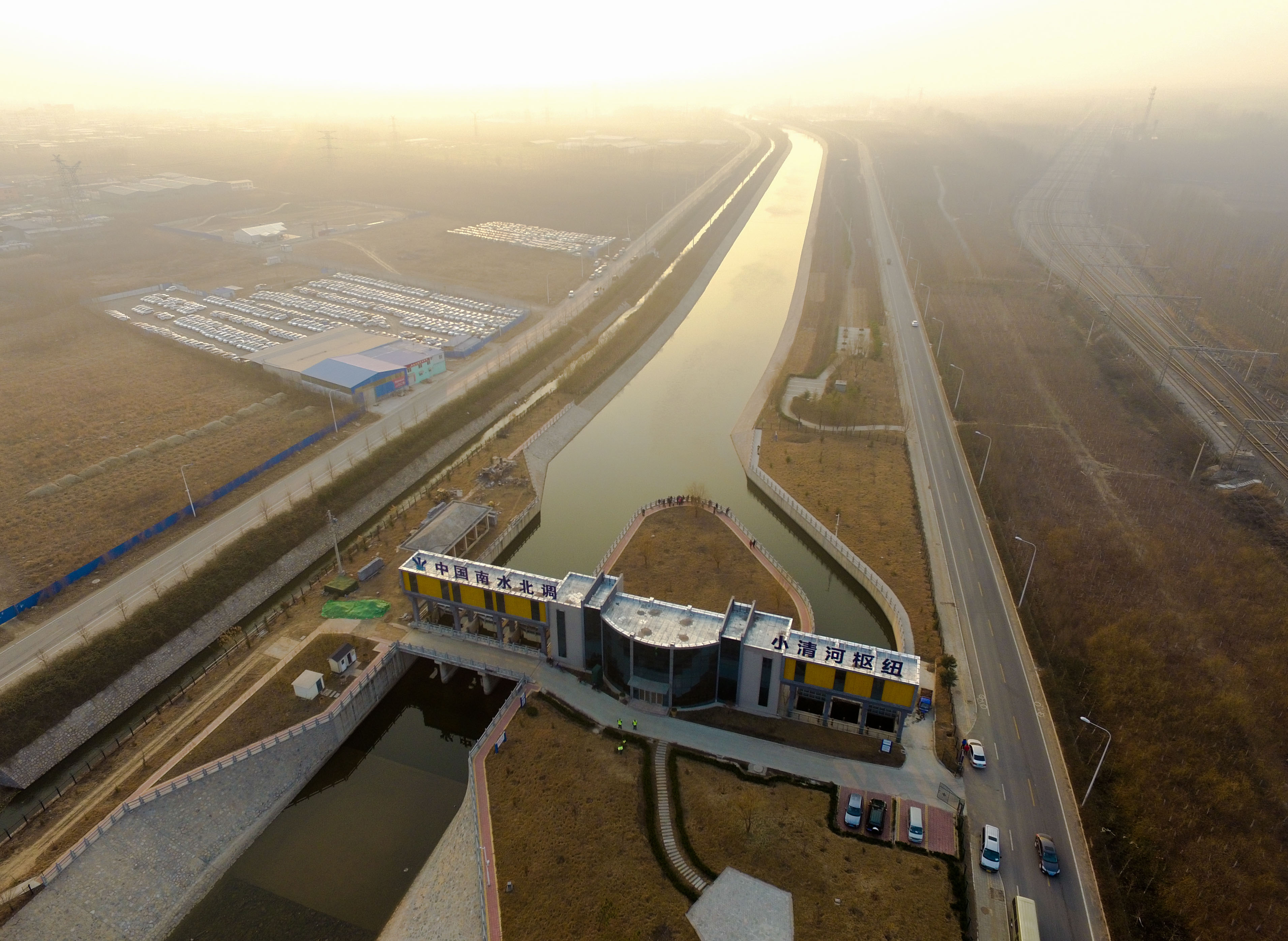 ↑位于山东济南的南水北调东线小清河枢纽(2016年12月8日摄)。