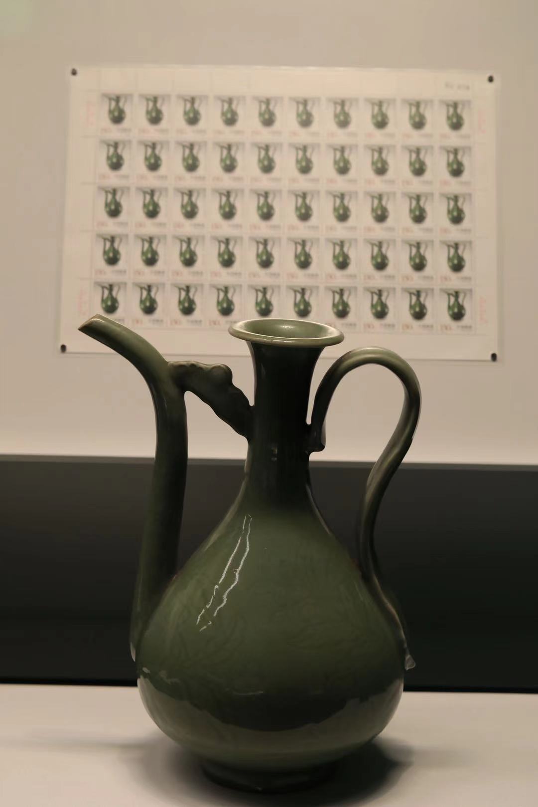 还有一批经典文物和邮票同框展出。专家介绍,邮票中出现的故宫文物涵盖瓷器、玉器、珐琅器、绘画、书法等类别。此次配套展出了25件文物,除5件书画复制品和1件青铜莲鹤方壶复制品外,余下19件都是国家珍贵文物原件。其中包括金瓯永固杯、“乾隆宸翰”宝玺和战国铜虎节等。