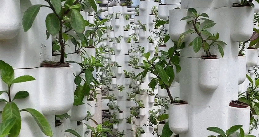 郁郁葱葱的绿色植被,潺潺的流水,这样一个好似“世外桃源”般的地方,其实是个科技赋能的“蔬菜大棚”,超级美,有木有?!