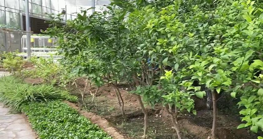 温室还设有南果北种区、农耕文化体验区、家庭农场区等种植有140多种植物,采用8大类先进技术。