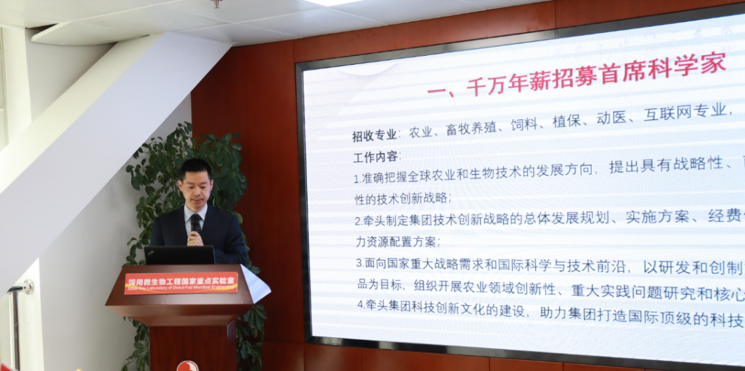 在直播招聘环节,大北农集团、水木九天相关负责人分别公布了招聘职位。大北农集团人力资源副总监兼感召指导部总监朱芳林介绍了大北农2021年“123”人才工程,包含 1万名养猪人才,200 名博士,3000 名驻场技术服务人员,同时还面向全球人才,千万年薪招募一名首席科学家。