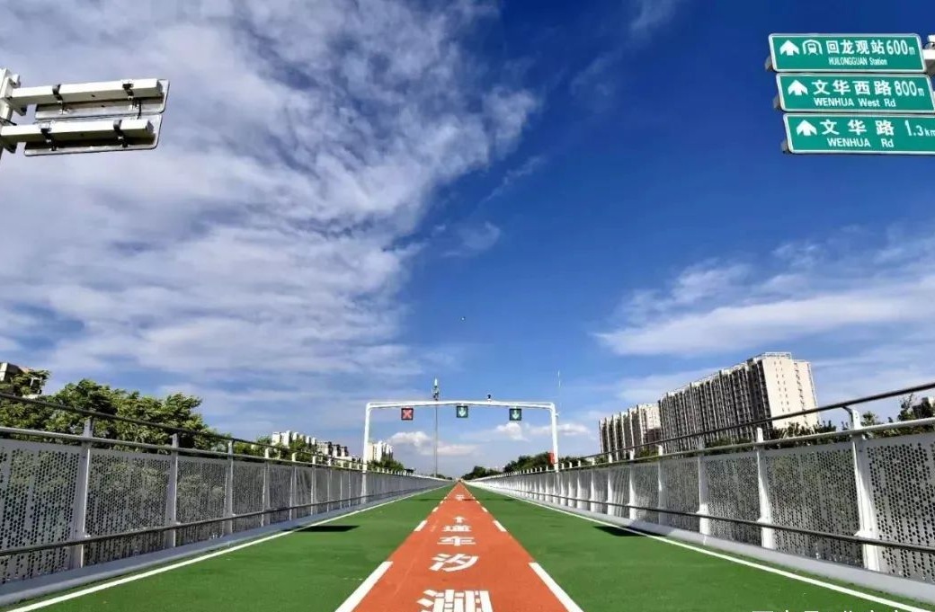 2019年5月31日,自行车专用路开通,东起昌平回龙观同成街与文华路交叉路口,西至上地后厂村路与上地西路交叉口,全长6.5公里,设置上下两条车道和一条潮汐车道,共有17个出入口、3部无障碍直升电梯、7部自行车助力系统,1处养护工区,1处服务区。2021年7月,建设完成回龙观至上地自行车专用路西延工程,全市首次实现了“自行车左转优先”的交通组织,使得非机动车通过路口距离缩短了1/4,路口通过时间减少了1/3。此外还通过增设二次过街安全岛、公交站自行车道后绕、断面局部加宽、路缘石下检查井加盖等措施,全面提升了步行与骑行品质。今年将推进回龙观自行车专用路东拓和南展工程的建设工作。自行车专用路开通后,受到市民的广泛关注和好评,自行车出行成为回龙观与上地软件园之间性价比最高的通勤方式。自行车专用路既承担了回龙观至上地软件园之间的通勤功能,又兼顾了休闲娱乐健身等功能,促进了慢行交通的回归。