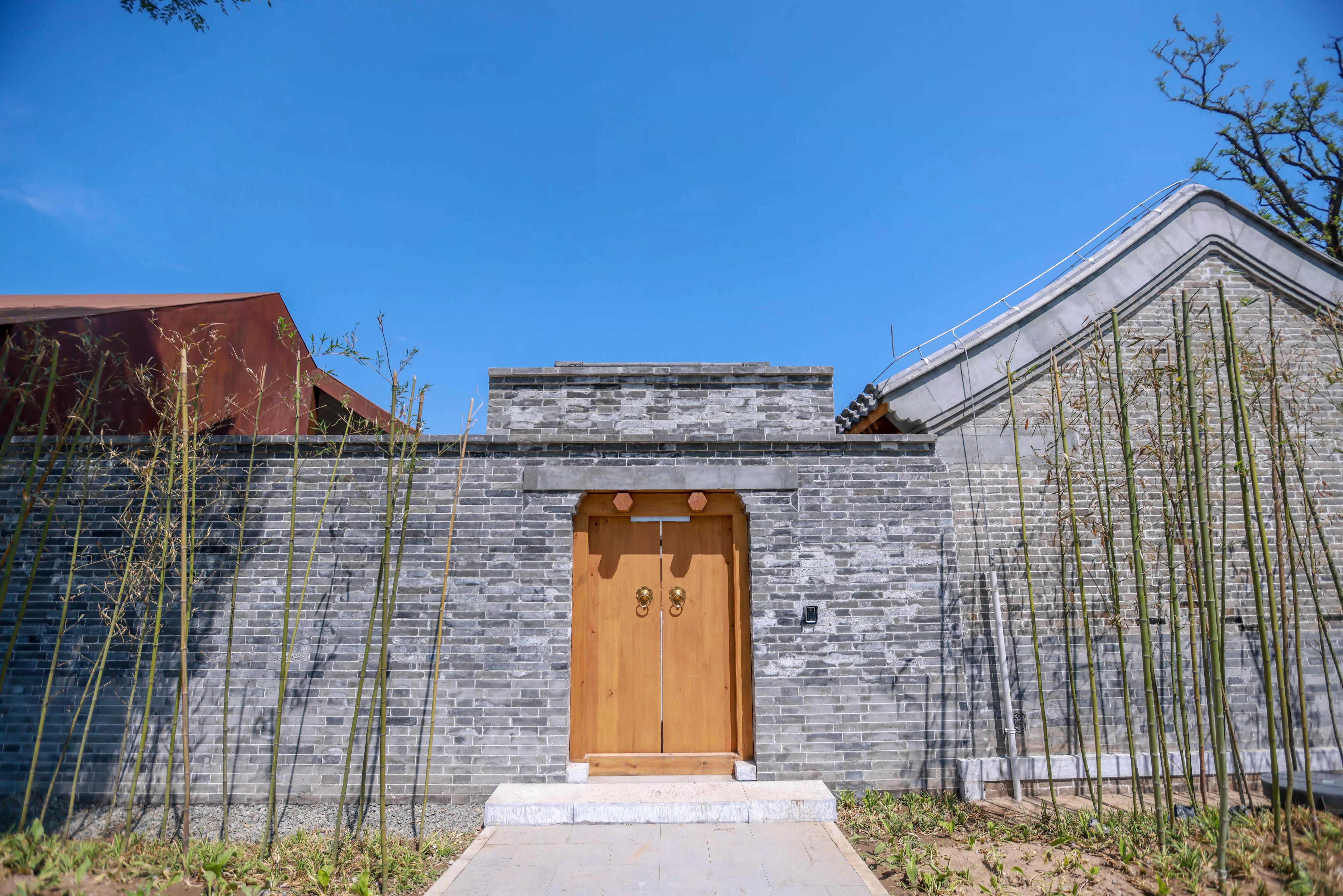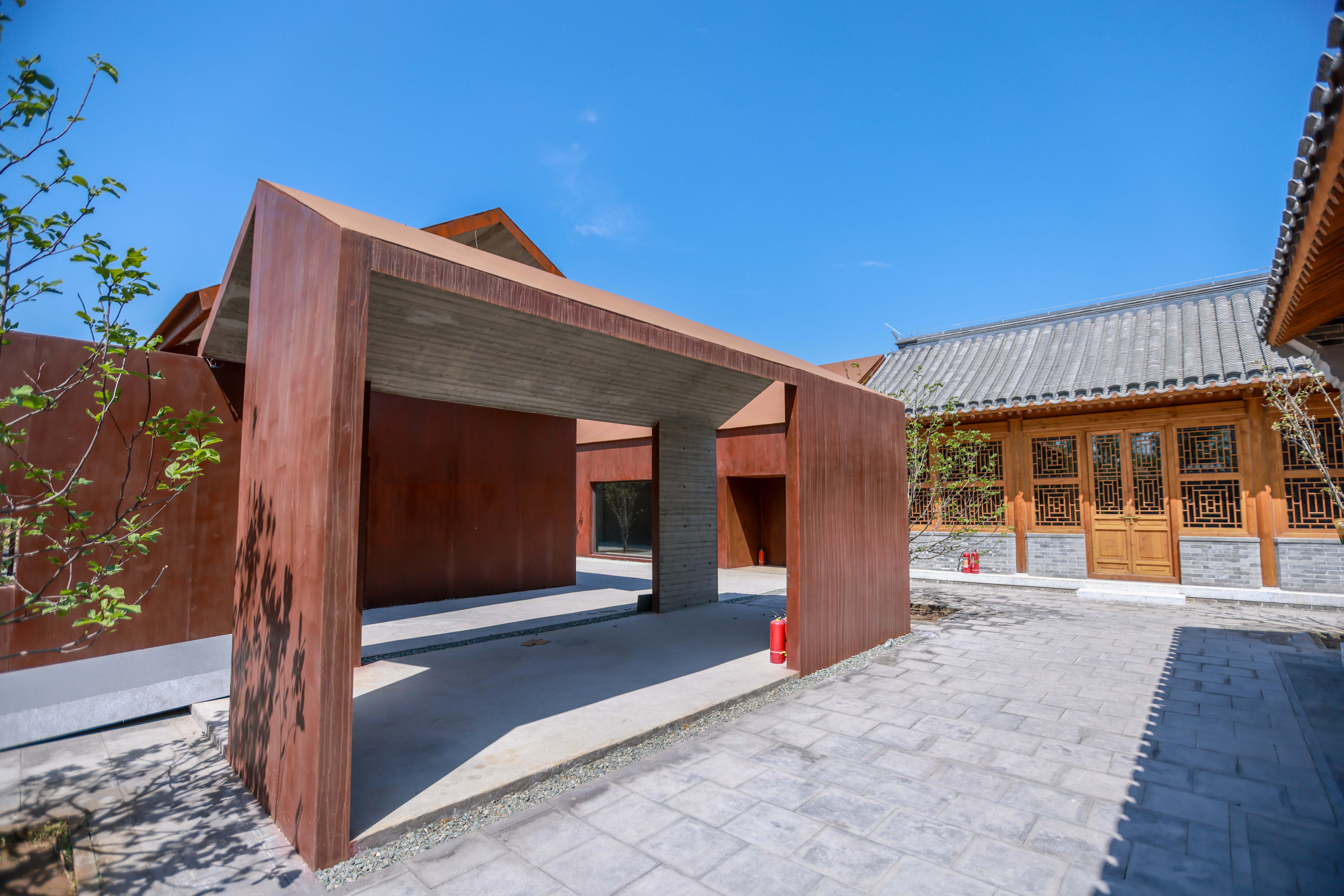 重新亮相的民国小院可以说是古今杂糅。构成新院墙的砖块中,约4200块旧砖是从旧建筑中仔细挑选出来的。而小院内加建的部分,则采用了现代化的钢板建筑,用清水木纹混凝土浇筑而成的墙板,既有现代建造技术下的精度,也不乏一种自然的颗粒感。