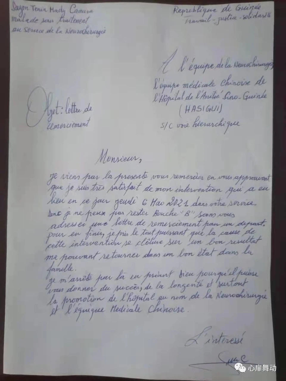 5月18号,患者顺利出院。出院前,患者满怀深情地表示感谢,真诚的笑容让中国第28批援几内亚医疗队倍感温暖。