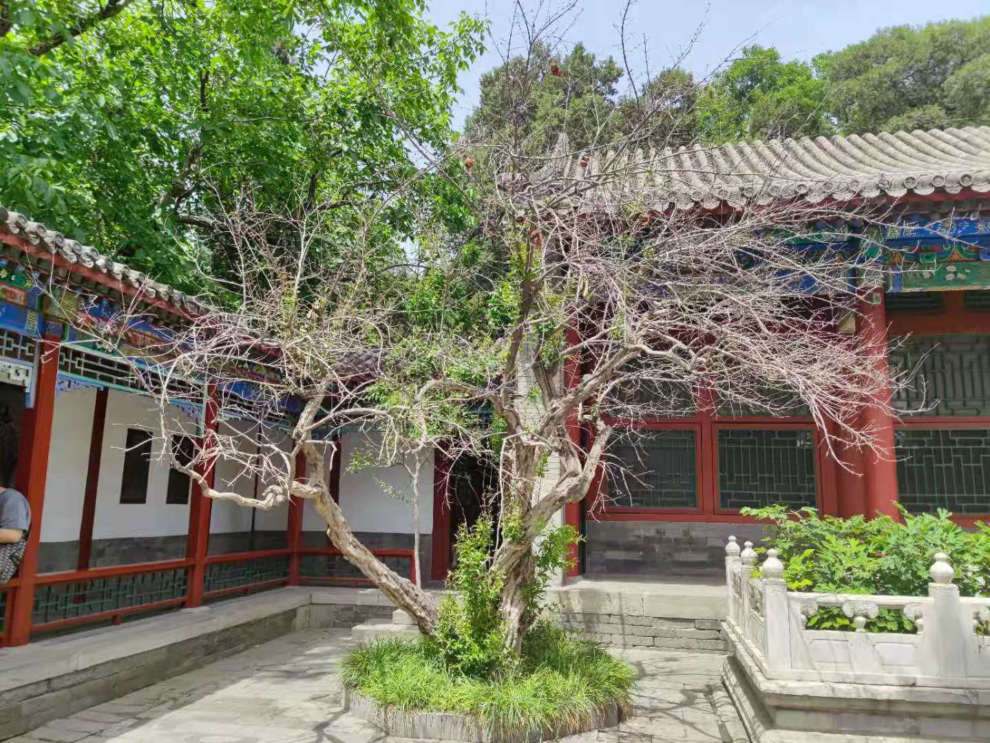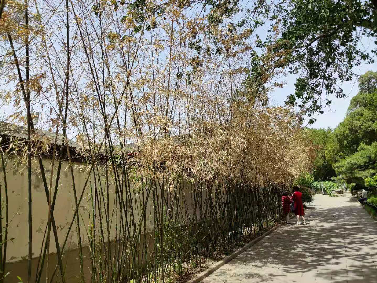 5月23日,已是入夏时节,位于北海公园北岸的一小片竹林,却还是黄绿夹杂的状态,地上落满了枯黄的落叶。快雪堂玉兰轩西侧的石榴树也引来游人的担忧,这棵树两侧的枝干还是光秃秃的,只有底部和中部的新枝上长出了绿叶。“往年5月底6月初,已经是石榴花盛开的时间,今年却连绿叶都长得这么少,这是怎么了?”