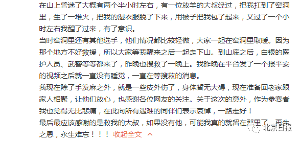 “有人私信我,让我去死,我做错了什么。” 张小涛称,还有一些人质疑“前六名中唯一生存者”的说法是在炫耀成绩,也有人觉得他不感恩伸出援手的牧羊人。
