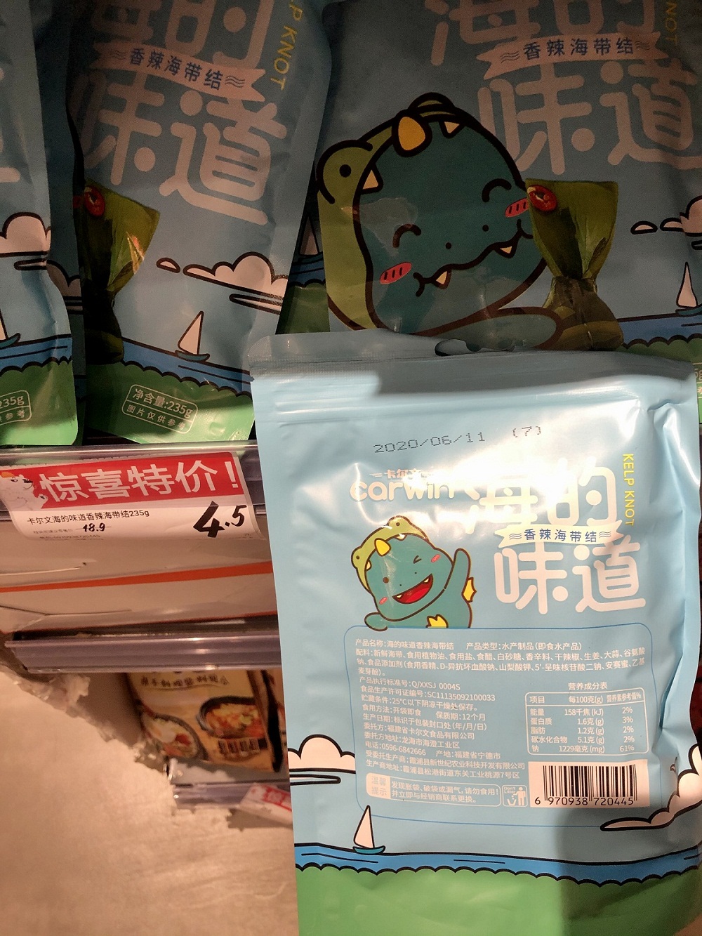 同样转变的还有家住草房地铁站附近的小姜。“与其买一堆在家里放成临期食品,还不如直接低价选这种,既能享受到‘薅羊毛’的快感,又省得造成不必要的浪费。”如今,家门口新开的一家折扣超市成了她定期扫货的地方。“里面有不少临期食品,价格大多在2到5折,对即买即吃的人来说比较划算。”以一款200克装的燕麦方脆为例,生产日期为2020年9月11日,保质期10个月,可以到2021年7月11日。目前特价只要4.9元,大概相当于在市场价19.9元的基础上打2.5折。