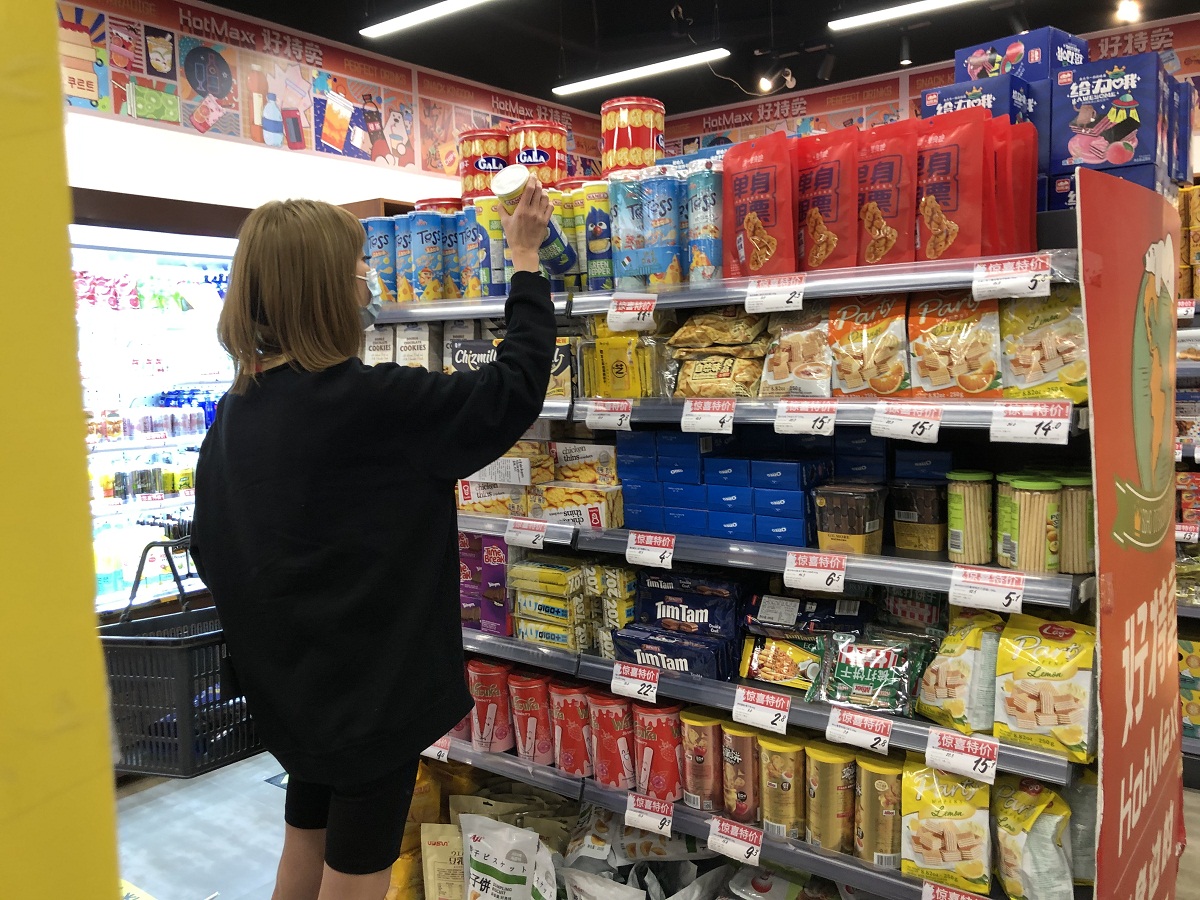 “从网上看到有不少人推荐这家店,据说经常会有特价的临期食品,性价比很高。”放眼望去,一排排货架中品种繁多的膨化食品、饼干糕点、酒水饮料等令小梁兴奋不已,“选品方面比较新潮,有挺多网红款,不像传统折扣店那种处理尾货的感觉,适合既重品牌又想省钱的年轻‘吃货’。”