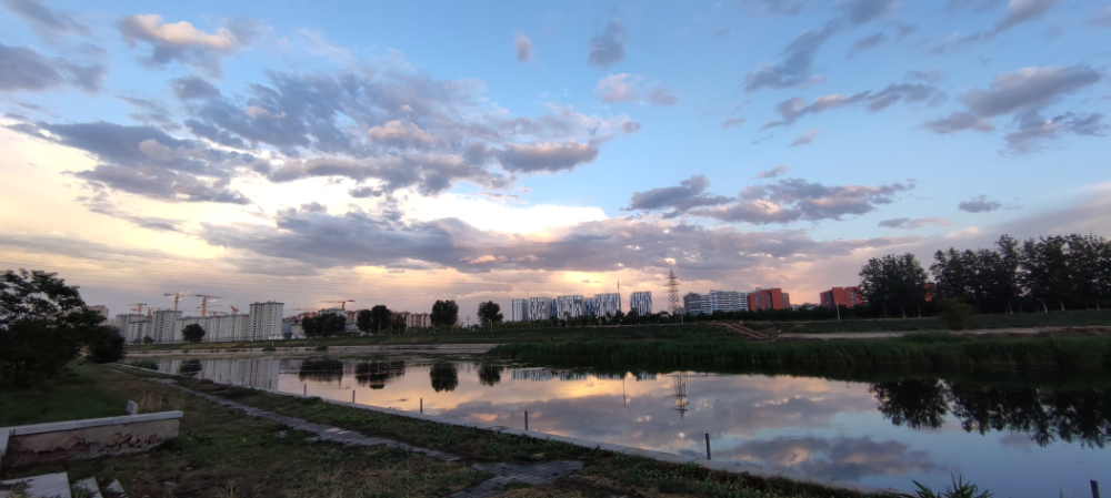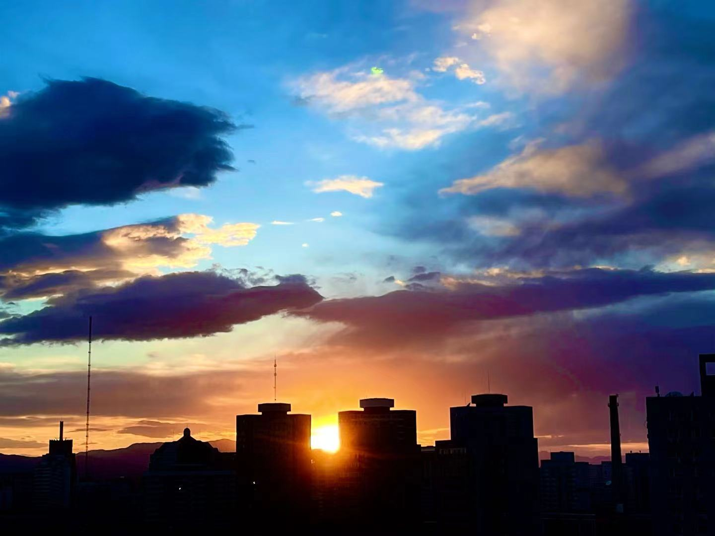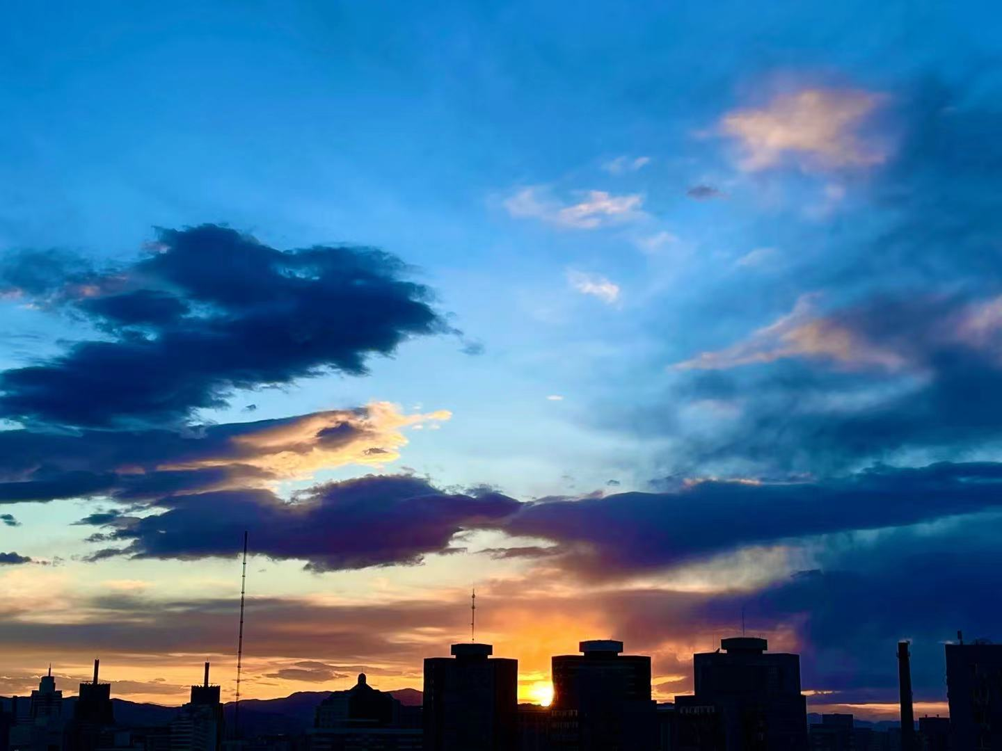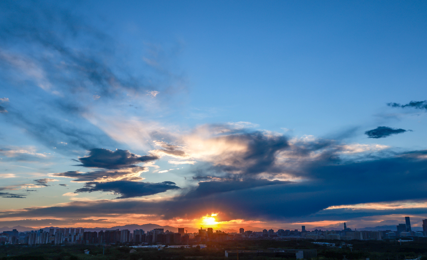 5月26日,雷雨和绚丽双彩虹刚刚“下线”,傍晚时分,北京天空又出现彩霞,夕阳下霞光漫天,天际美得好像油画一般!