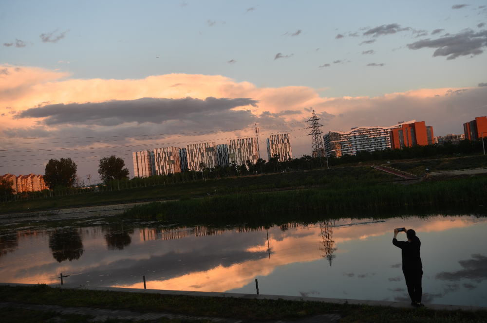 5月26日傍晚,在凉水河畔,市民在欣赏晚霞。