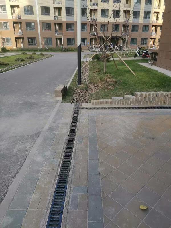 青棠湾绿地中的卵石沟和单元门前的线性排水沟