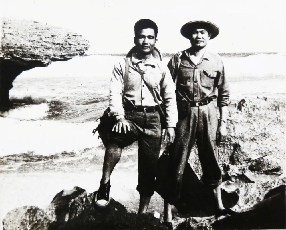 1974年10月,赵焕庭(右)与同事登上永兴岛考察留影。受访者供图