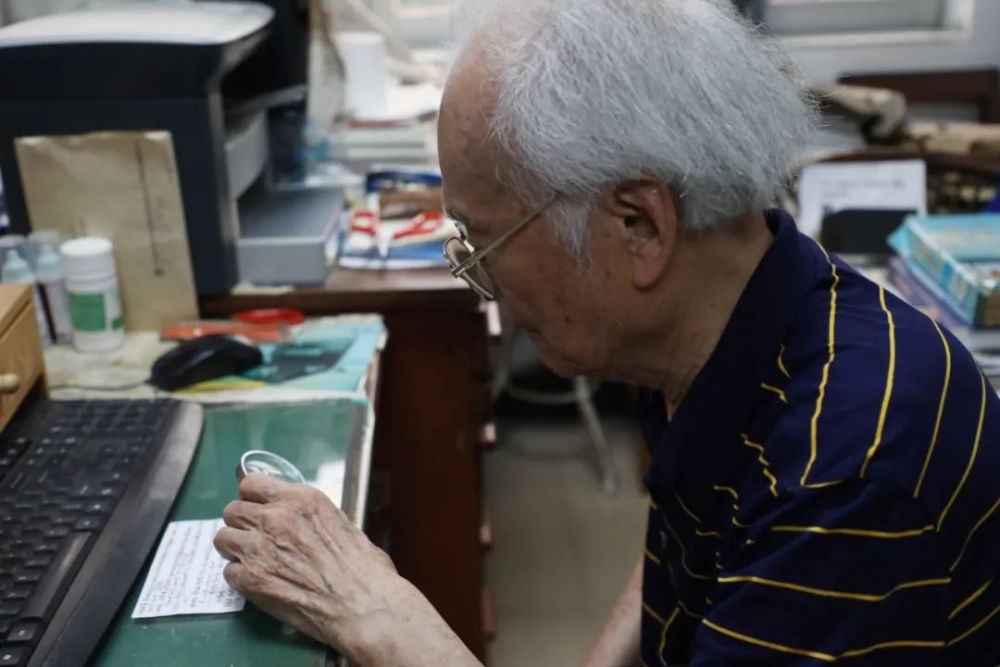 受视力衰退的影响,对一些材料上的字,他需要拿着放大镜,一个字一个字地看,有些还要敲到电脑上……