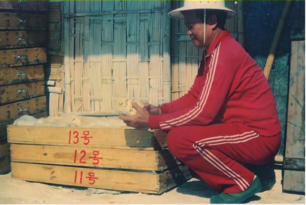 1990年6月,赵焕庭在永暑礁上观察“南永1井”岩芯。受访者供图