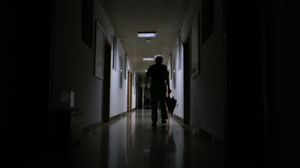 5月26日凌晨4点多,赵焕庭走在通往办公室的楼道上。