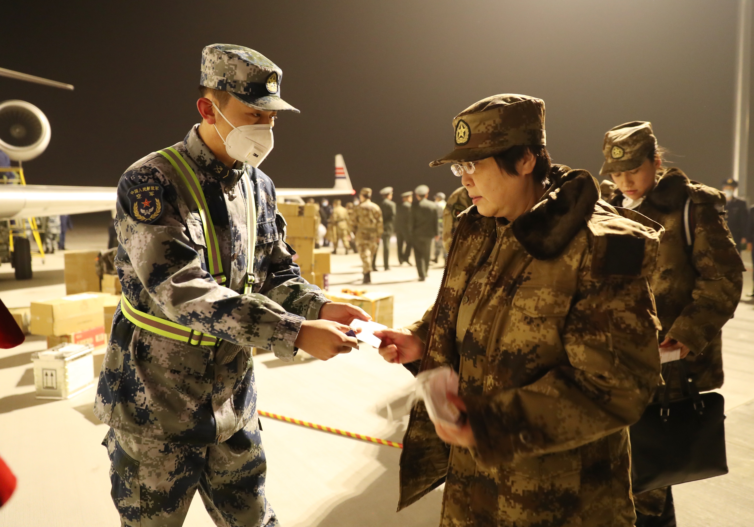 2020年1月,陈薇(中)带领团队奔赴武汉,在机场登机。