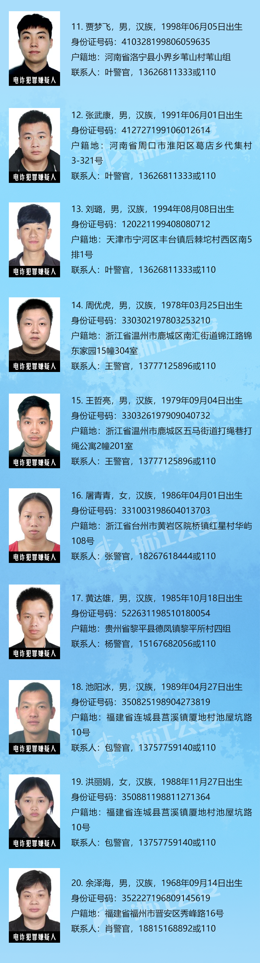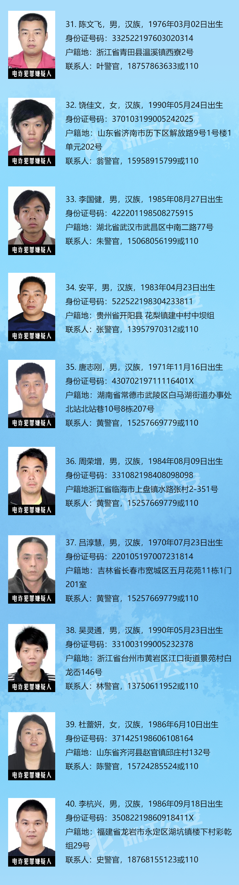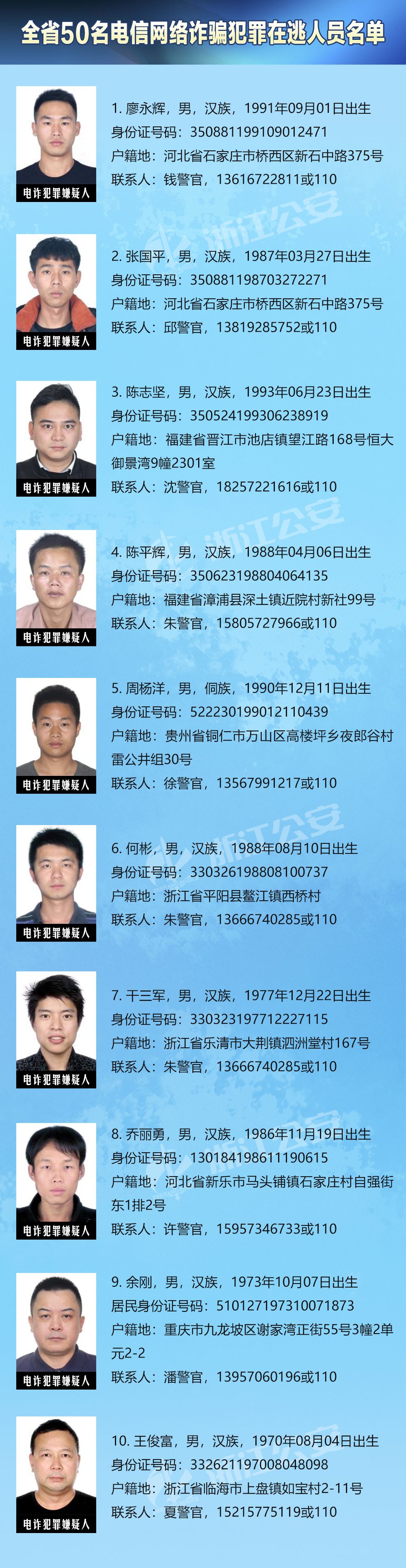 浙江省公安厅关于公开通缉50名电信网络诈骗犯罪在逃人员的通告