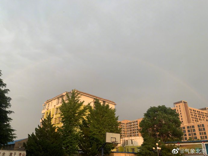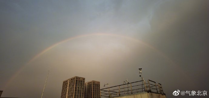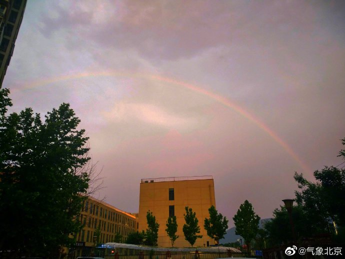 据@气象北京 消息,市气象台2021年6月1日17时15分发布雷电黄色预警信号:预计,当前至23时,本市将有雷阵雨天气。目前,西部、北部部分地区阵雨已经结束,天空出现美丽的彩虹。