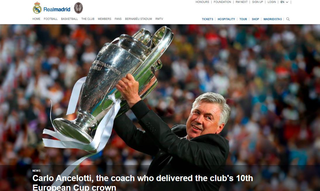 皇马官网首页对安切洛蒂重回球队进行了报道。