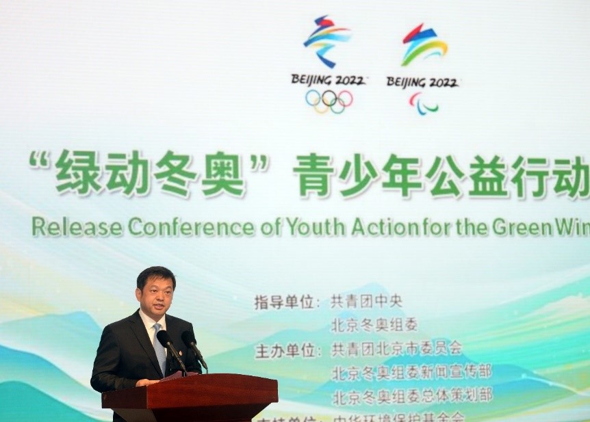 2021年6月5日世界环境日,“绿动冬奥”青少年公益行动在北京冬奥组委展示中心正式启动,共青团中央社会联络部部长郭峰、共青团北京市委员会书记李军会、北京冬奥组委新闻宣传部副部长吕钦、中华环境保护基金会副秘书长王振刚等有关领导和嘉宾出席活动。